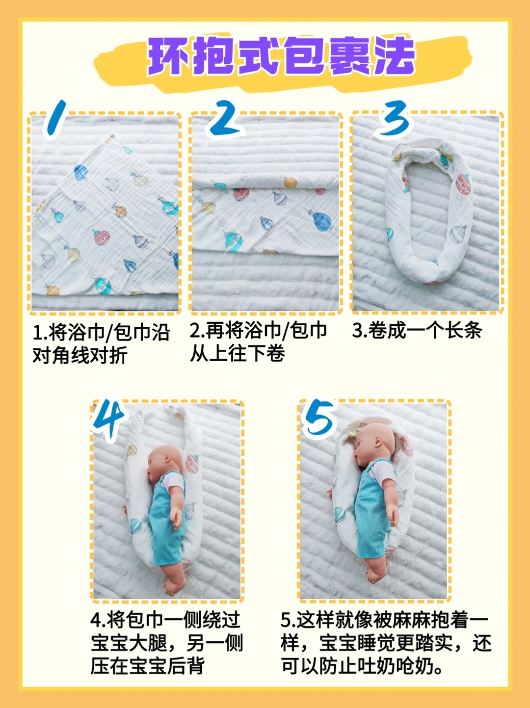 👉这样包裹就像在妈妈的怀抱里一样有安全感。还可以让宝宝侧睡,防止吐奶呛奶。
