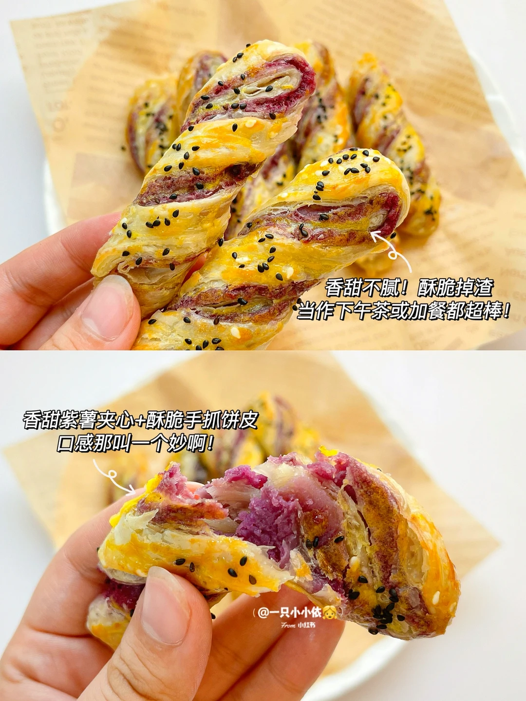 🧚♀️无需揉面、酥酥脆脆、香甜浓郁的宝宝紫薯扭扭酥来啦,当作下午茶或加餐都🉑️哦!