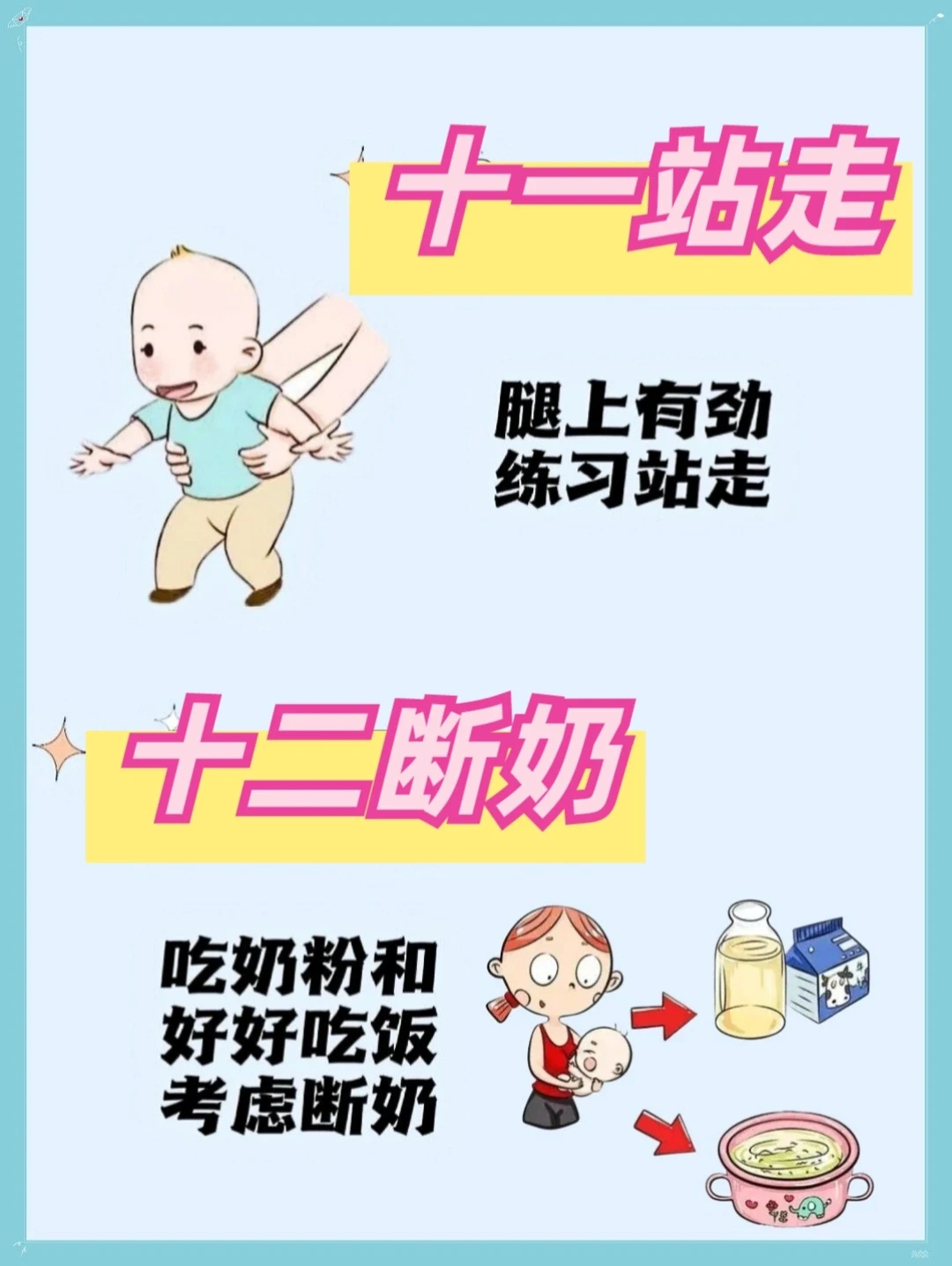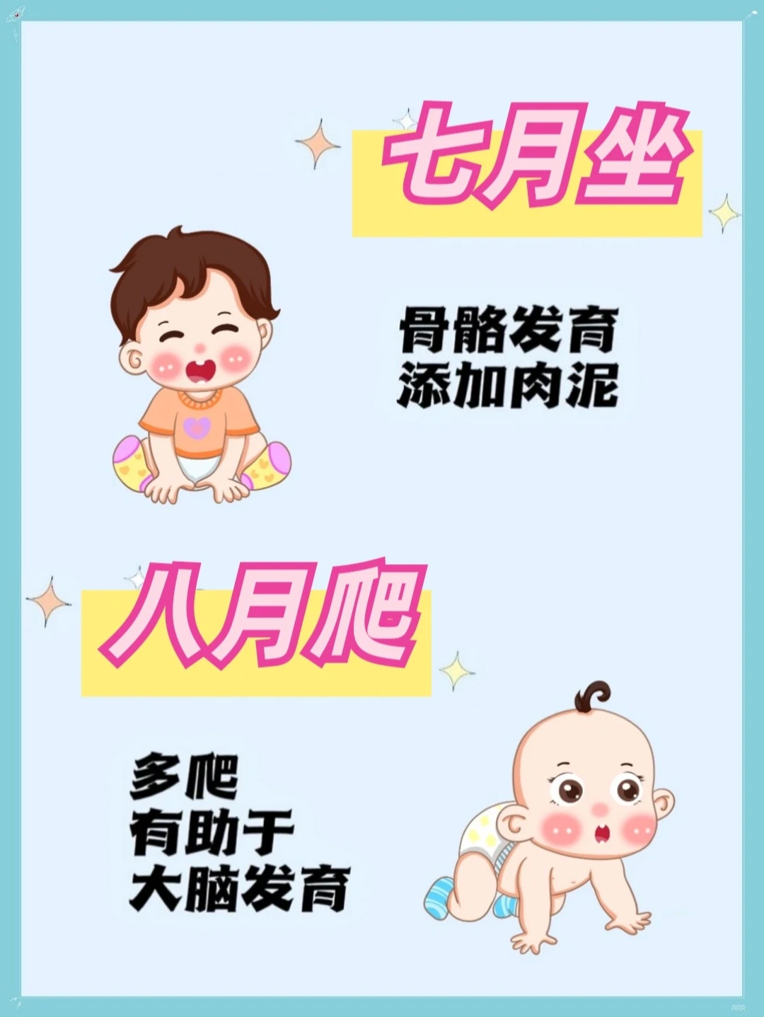 六辅食,七月坐,八月爬,九断夜奶,