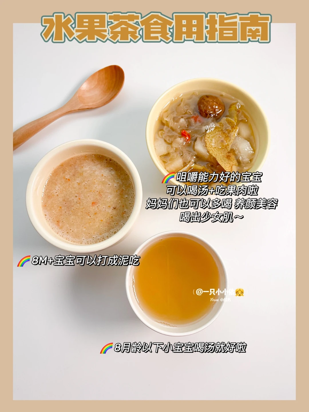 👶8月龄以下小宝宝喝汤就可以,8月龄以上可以达成泥吃,咀嚼能力好的宝宝连汤带果肉一起吃~妈妈平时也可以跟宝宝一起喝,养颜美容,喝出少女肌[飞吻R]