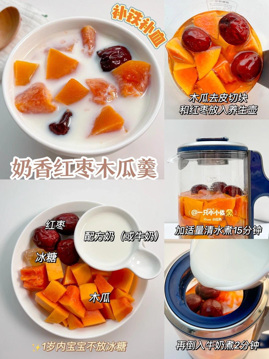 🔹食材:木瓜、红枣、配方奶(或牛奶)、冰糖