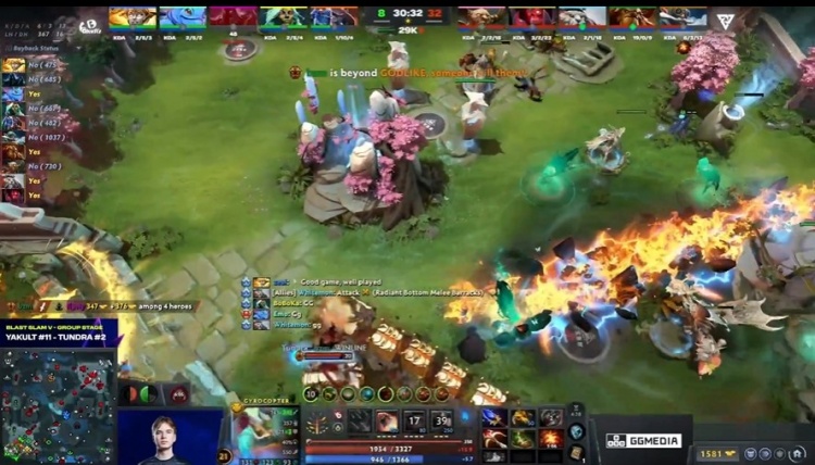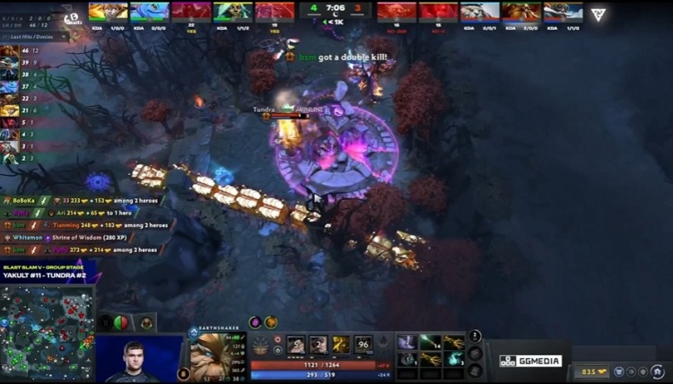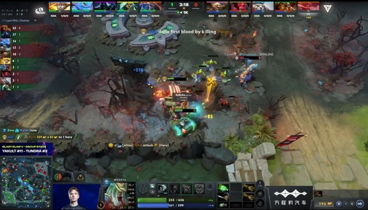 [30分钟]Tundra下路上高,flyfly亚巴顿被bzm撼地者上秒掉,正面完全没有还手之力,YB打出GG。
