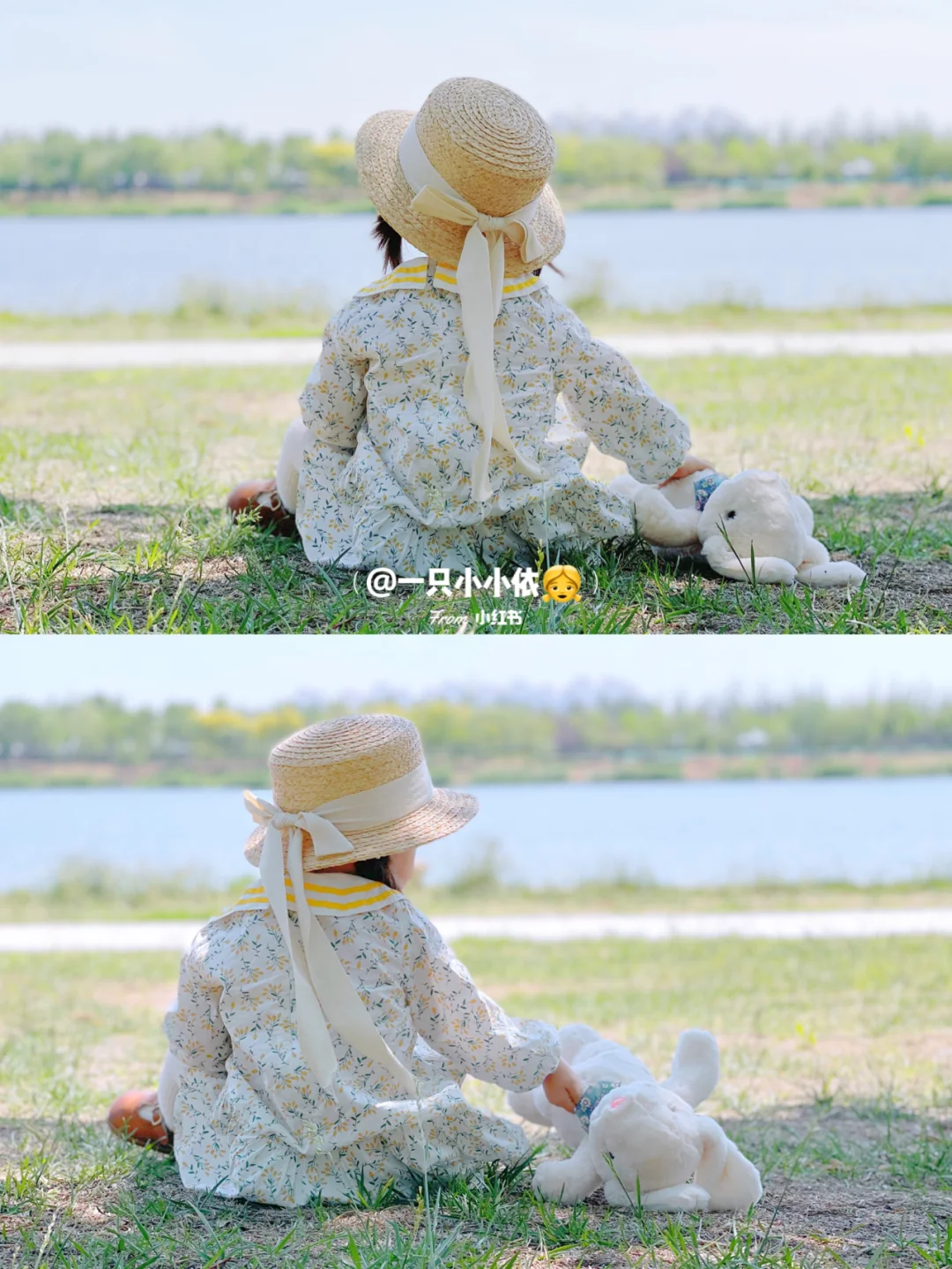 女宝宝尽量选清新一点的小裙子,搭配草帽,超级好看;