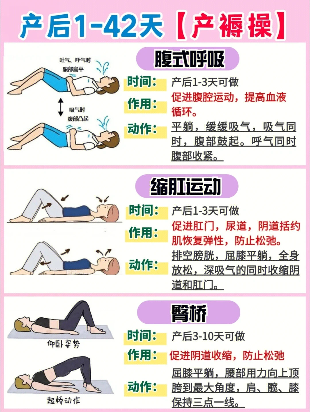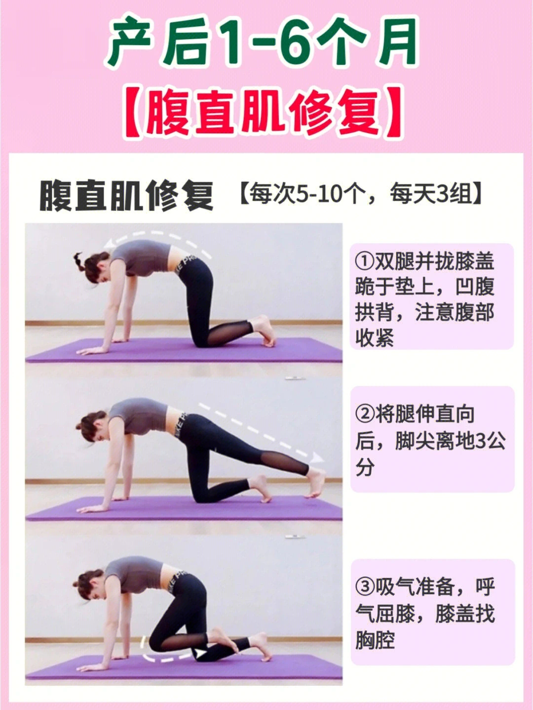⚠️产后半年内不做跑步、跳跃等运动,会加重盆底肌松弛;不能做卷腹、仰卧起坐等,会加重腹直肌分离!