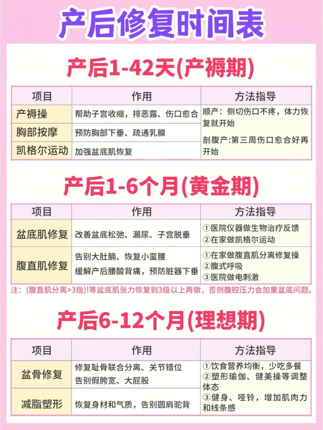 身体机能(伤口愈合、子宫恢复)➡️盆底肌➡️腹直肌➡️骨盆➡️身材塑型