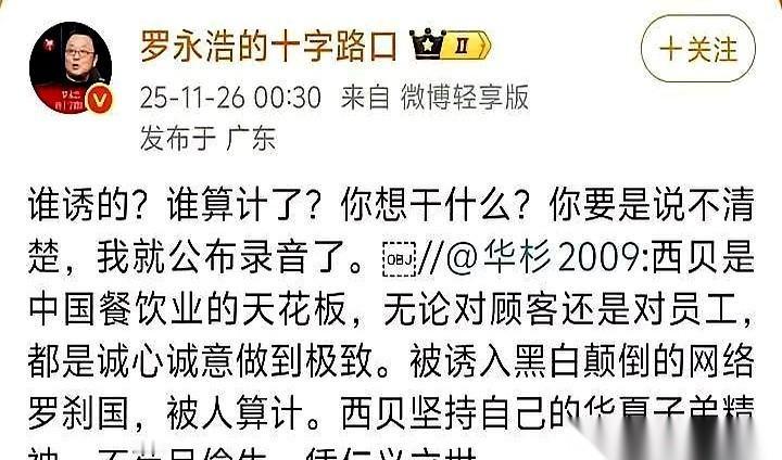 6000万,砸下去,不是为了听响儿的。 但现在这响声,估计震得西贝贾总脑仁儿都疼。 我跟你说,现在全网最想静音、最想断网的,绝对是他。好家伙,本来是想花钱消灾,请个军师力挽狂澜,结果呢? 军师直接在城门口跟人吵起来了。 一边是花真金白银请来的“高人”,华与华,指望人家救火呢。这火没救成,反倒把罗永浩这尊真神给炸出来了。 另一边是老罗,这哥们儿你懂的,什么时候吃过亏?他说手里有牌,那指定不是一张“3”。 这下好玩了。 华与华想踩着老罗一战封神,以后咨询费后面可能得再加个零。 老罗呢?就喜欢看你这副“想干掉我、又干不掉我”的拼命样儿。 可怜中间的老贾,里外不是人。这钱花出去,本想买个口碑,结果买了个“战场直播VIP席位”,还得是自己当主角的那种。 你说这6000万,到底值不值? 品牌知名度是结结实实又上了一个台阶,全国人民都知道了。 就是不知道大家下次路过西贝门口,是想进去吃顿饭呢,还是想进去问问: “您家那6000万的瓜,熟了吗?”