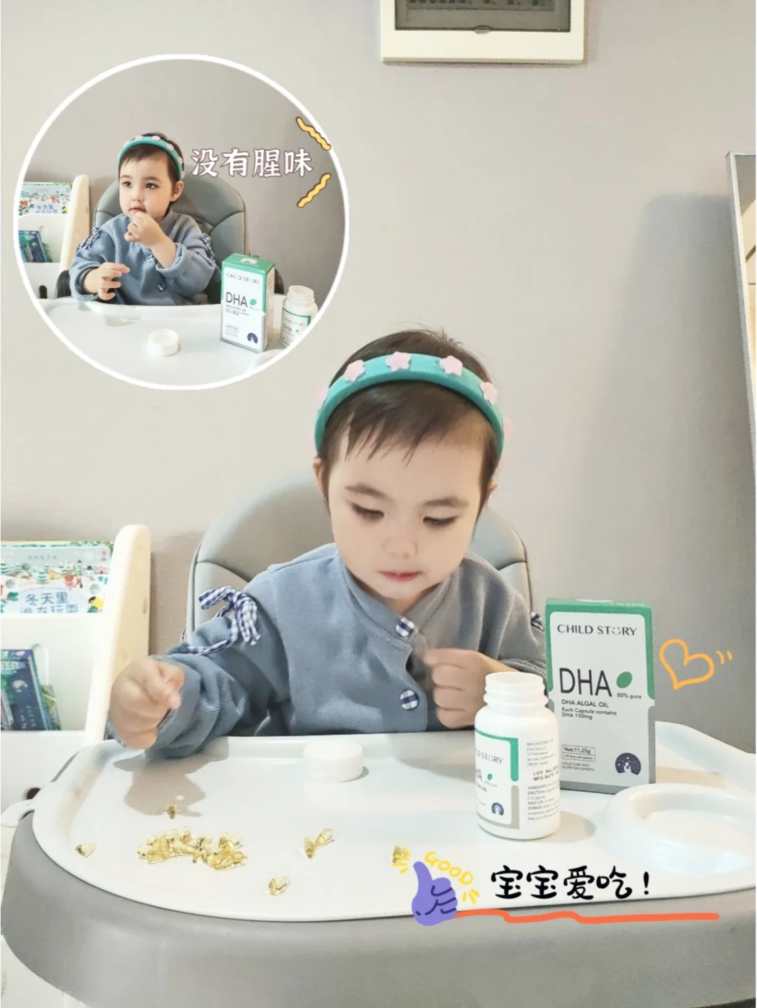 🌈因为家里比较少吃鱼,所以日常中一直通过补剂为宝宝补充DHA,童年故事藻油DHA宝宝很爱吃~纯度达80%,不易被氧化,0蛋白添加,容易过敏的宝宝也可放心吃!藻油DHA成分更干净,更适合宝宝吃!在官方授权店就可以购买哦!