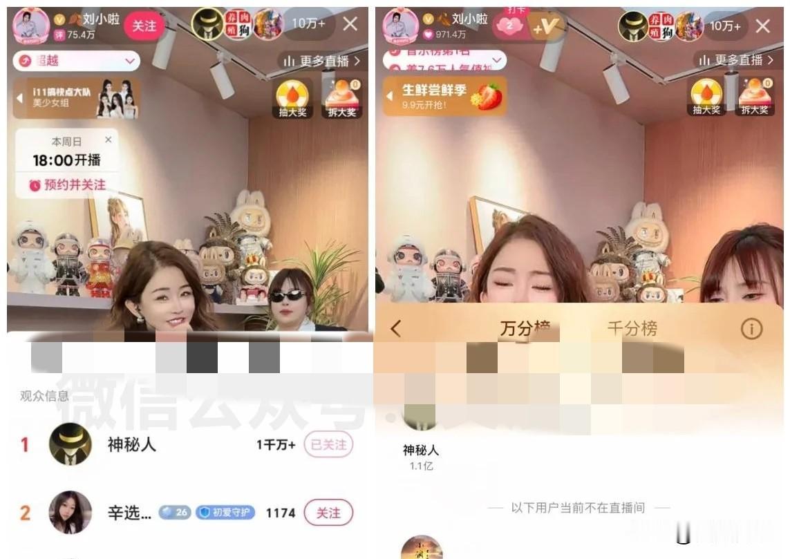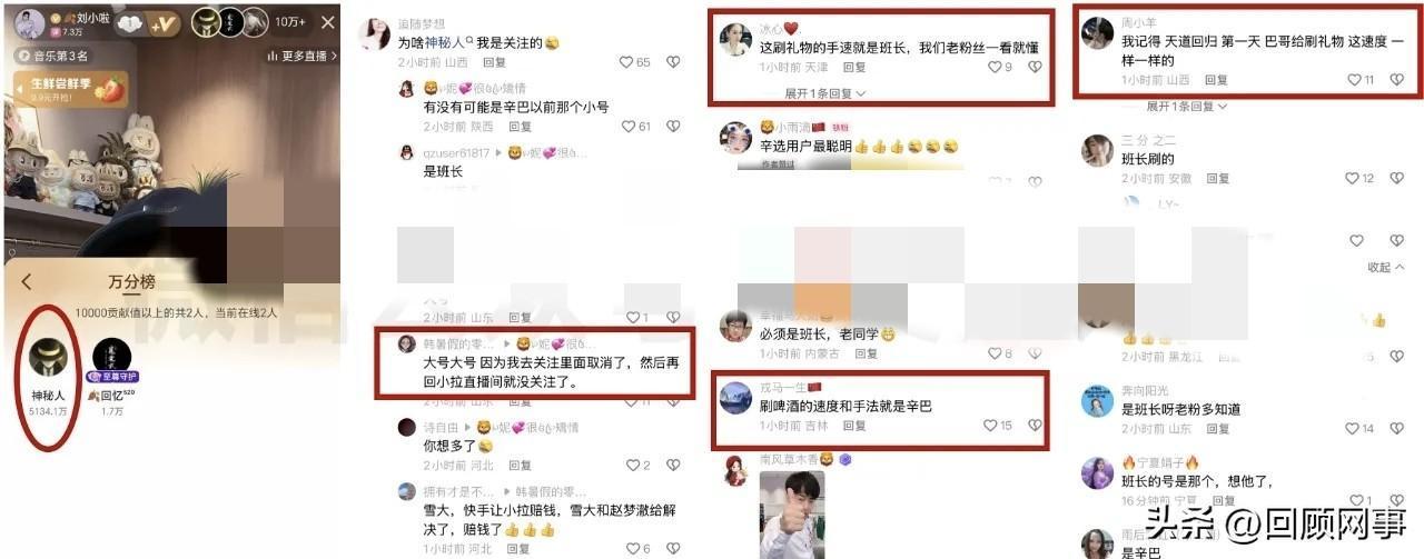 818粉丝激动疯狂,初瑞雪、刘小啦表现拘谨! 818粉丝热议“神秘人”身份多半认定他是辛巴本人,也有人觉得是初瑞雪在操控账号!总结以下粉丝的判断点: 1、粉丝无法查看“神秘人”身份但显示已关注,手动取消辛巴大号的关注后再进刘小啦直播间,发现连带将“神秘人”的关注也取消。 2、老粉丝通过“神秘人”刷礼物的手速断定是辛巴本人无疑!因为早在祁天道回归ks首秀时,辛巴就是用同样的手速刷礼物! 今晚刘小啦娱乐直播初瑞雪助阵!“神秘人”再次空降真金白银刷出价值1100万元的礼物!刘小啦没透露“神秘人”身份,只说是背后默默保护我的人! 初瑞雪出镜要献唱一曲,刘小啦在一旁悄声说“榜一大哥”来了!两个人在镜头前表现拘谨,声调也压低许多。