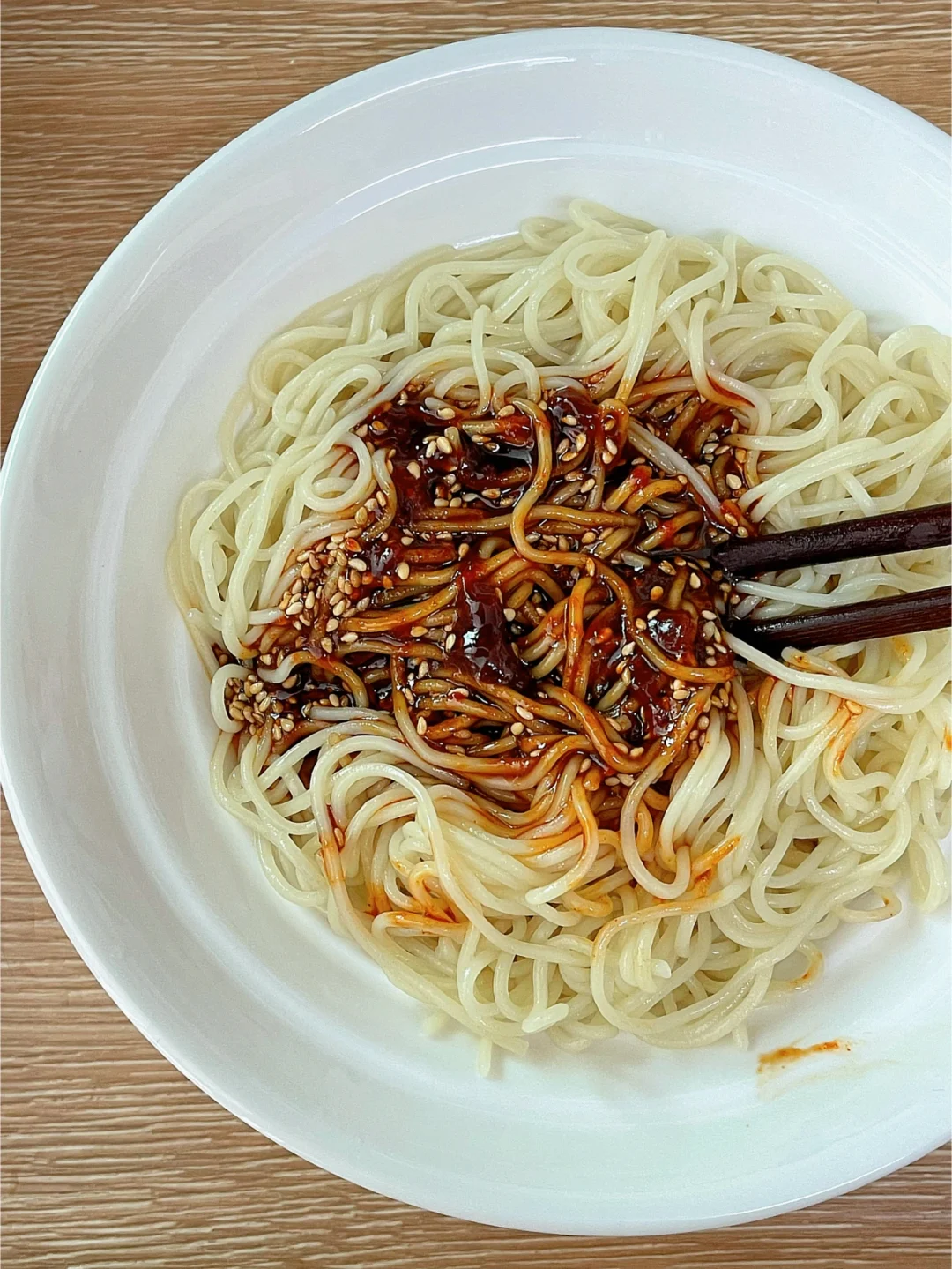 2️⃣把面捞起来放碗里,倒入酱汁拌匀