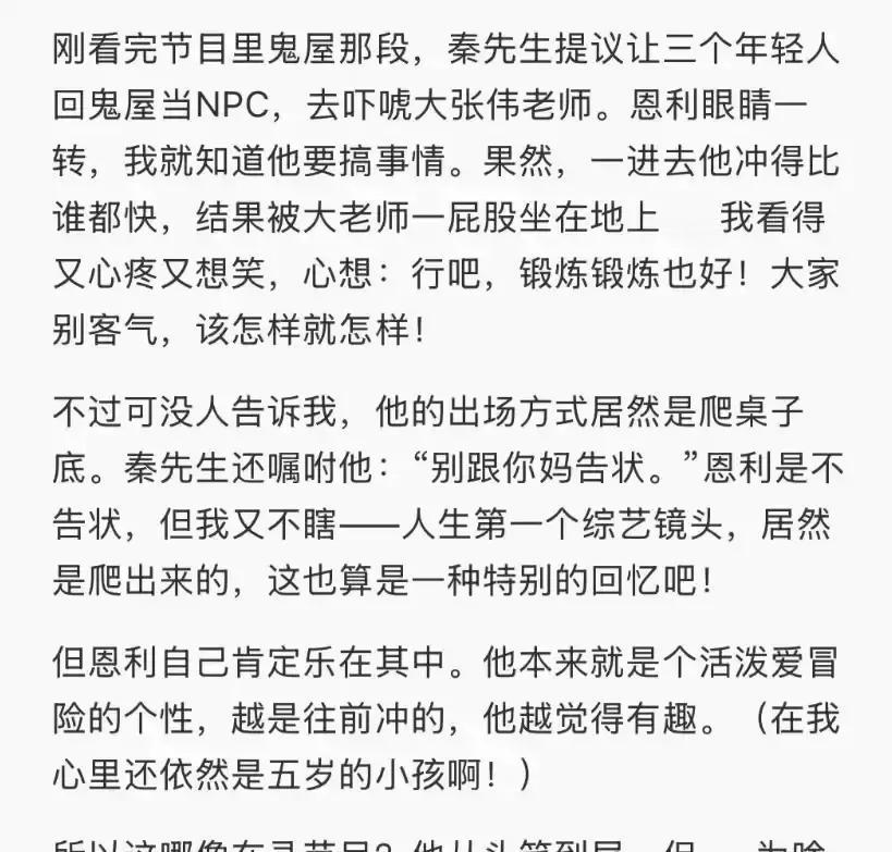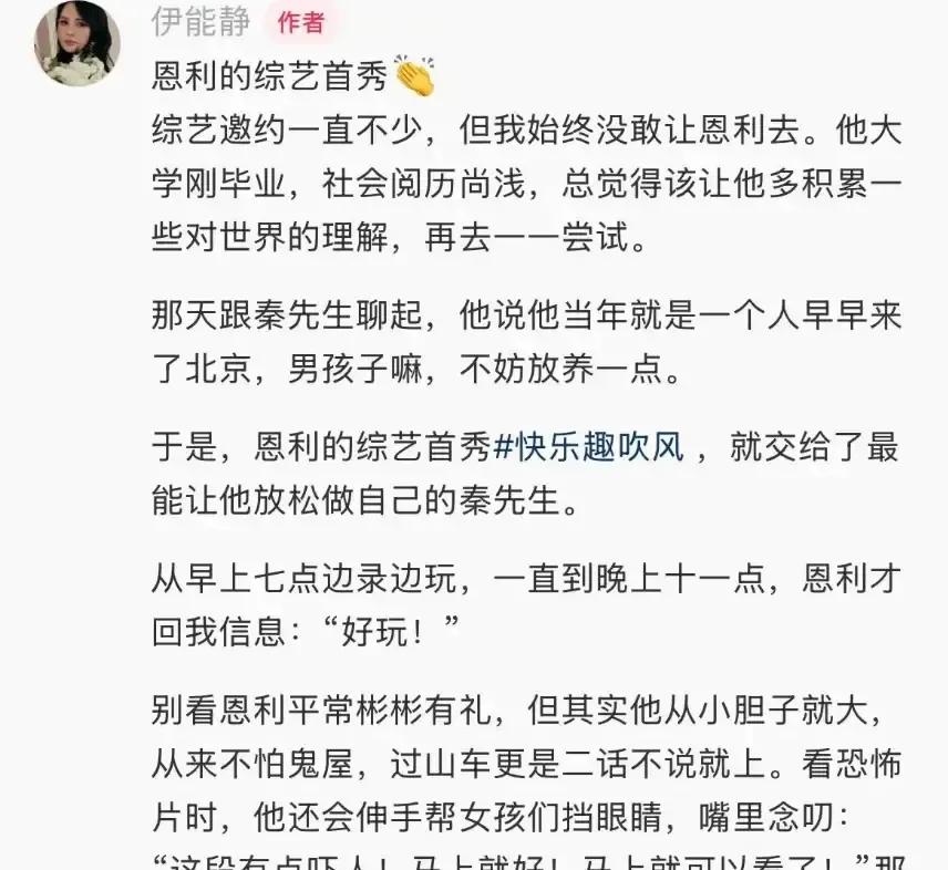 秦昊把23岁儿子恩利直接推到综艺镜头前,一段自唱自跳让弹幕瞬间刷屏。 我盯着他那张和爸妈像拼出来的脸,脑子里只有一句:星二代果然出厂自带滤镜。 彩排花絮里他动作错了就冲老爸耸肩,秦昊也不骂,只把节拍重新数一遍,父子俩像在家客厅排练晚会。 伊能静隔天发小作文,说孩子练到凌晨脚底起泡,我看完却想起我妈当年陪我背诗,也是一边心疼一边递水。 资源堆出来的舞台再亮,也挡不住第一次面对镜头的僵,他手指在裤缝边蹭汗的小动作,跟我面试时一模一样。 有人酸他赢在起跑线,我觉得真正的赛段才刚开始,能跑多远得看他自己续不续得上电量。
