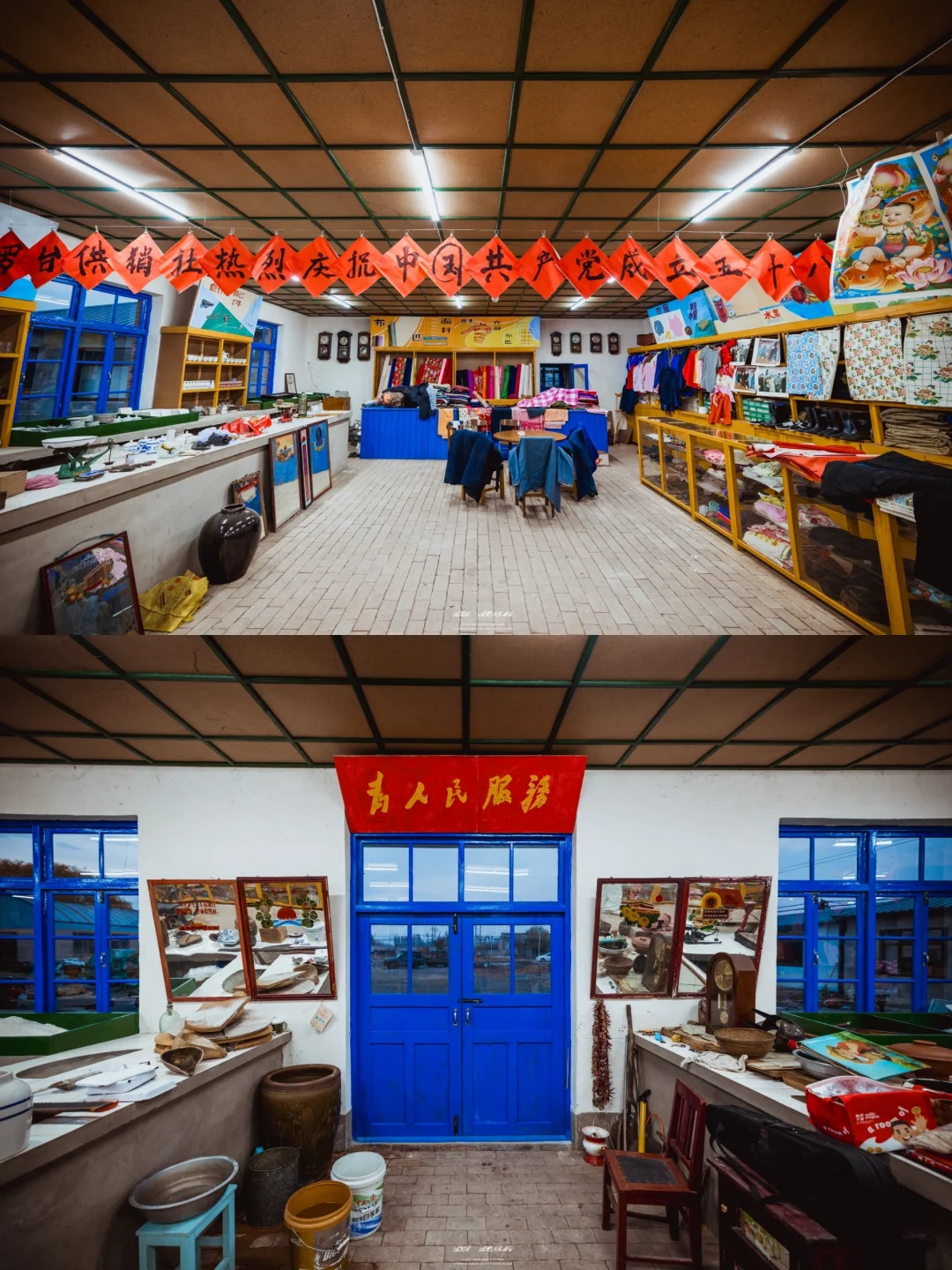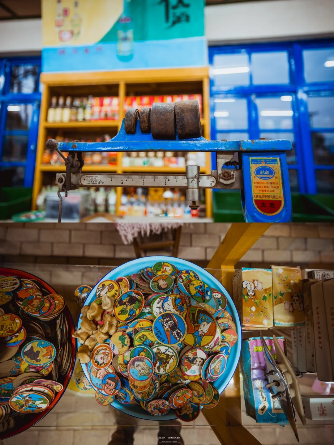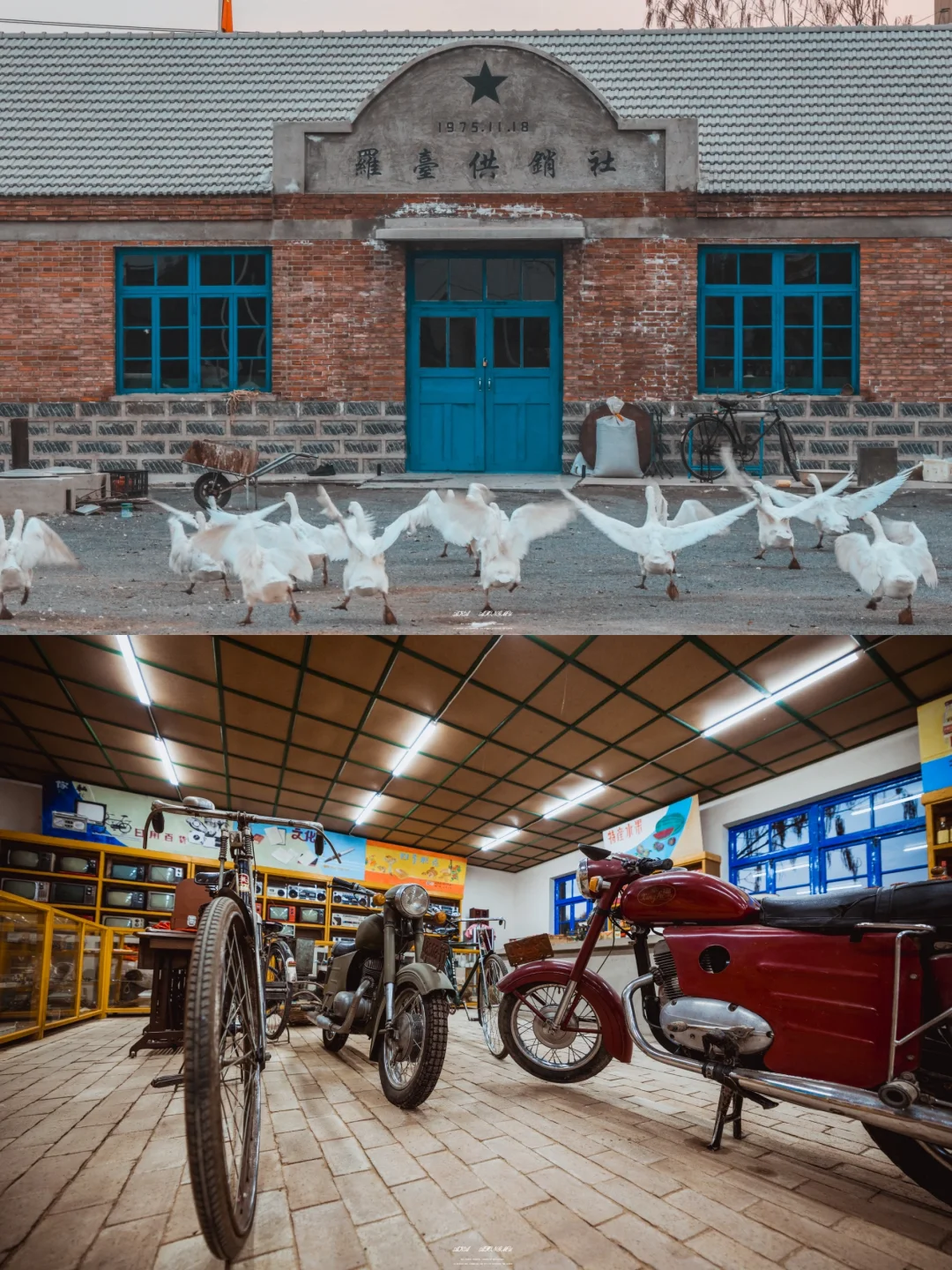 沿着导航罗大台村委会过来,供销社在一处大院里,来的气候天快黑了,供销社大门紧闭,一群大鹅叽叽喳喳,看起来有点张麻子到鹅城的赶脚,本以为吃了个闭门羹,还好老板娘及时出现,热情地打开了大门,也打开了一扇通往上世纪的大门 供销社里满是遥远年代的物件,老板娘说都是他们两口子一点一点收集来的,也包括这间供销社(旧的被拆了,后重建而成),旁边的旧厂房也在进行改造,里边还有不少老物件,老板娘自己玩快手拍视频,相信日后这里会成一个怀旧主题打卡地