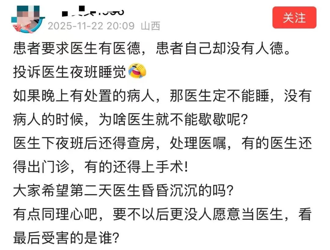 一起“患者投诉医生值夜班睡觉”事件,折射出医疗管理中亟待解决的矛盾。医院将医生夜班无病人时休息视为“不良事件”,实则忽视了连续超24小时工作,短暂休息是为保障后续医疗质量与患者安全的必要之举。当前“一刀切”的管理制度,强调形式上的在岗,却忽视了“疲劳行医”可能带来的真实风险。我们呼吁建立更科学、人性化的值班制度,在坚守岗位与必要休息间找到平衡,这既是对医护的关怀,更是对患者生命负责的体现。