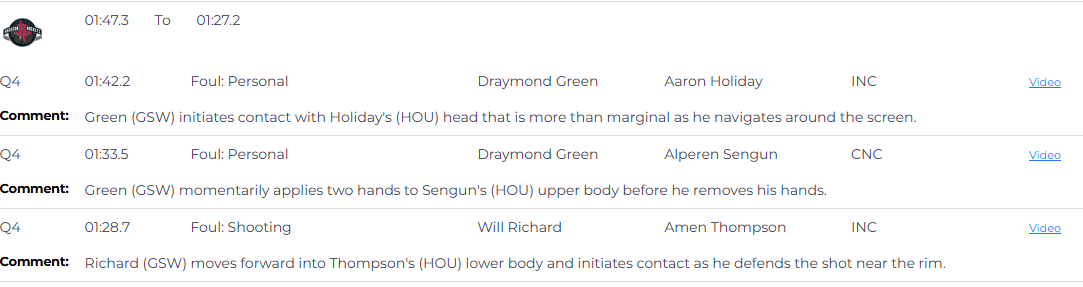 虎扑11月29日讯在前日NBA杯小组赛火箭客场104-100战胜勇士的比赛后,NBA官网发布了比赛最后两分钟的裁判报告。