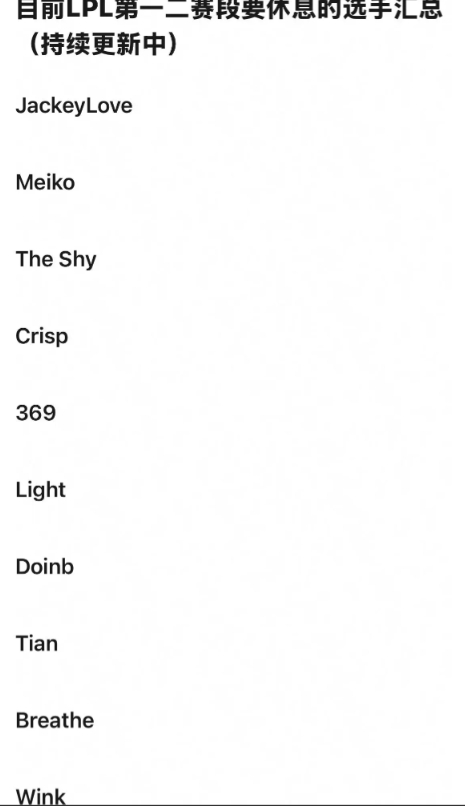 截止目前,总结所有爆料消息iG明年确认休息的选手有Theshy、Rookie、Meiko,Wei续约保工资帽,GALA进入选手池。