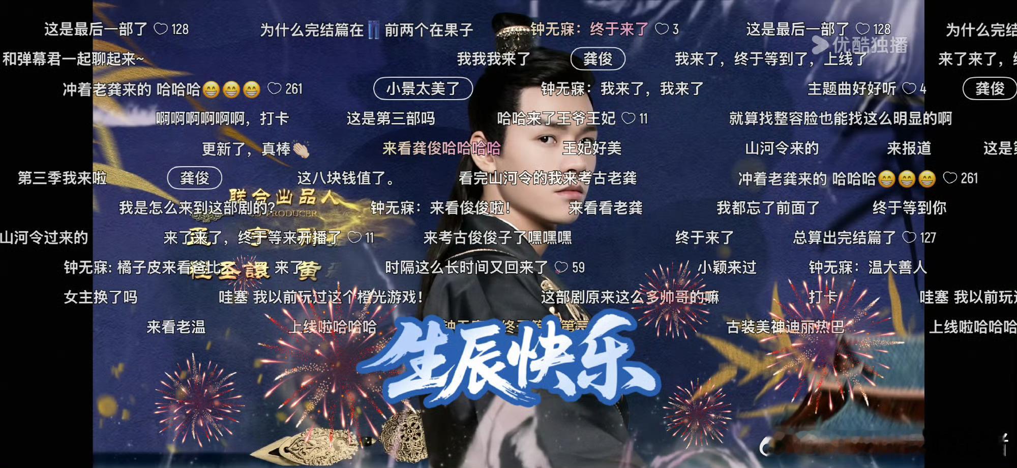 龚俊在优酷所有的剧综只要发龚俊/生日快乐都能出弹幕特效,好用心