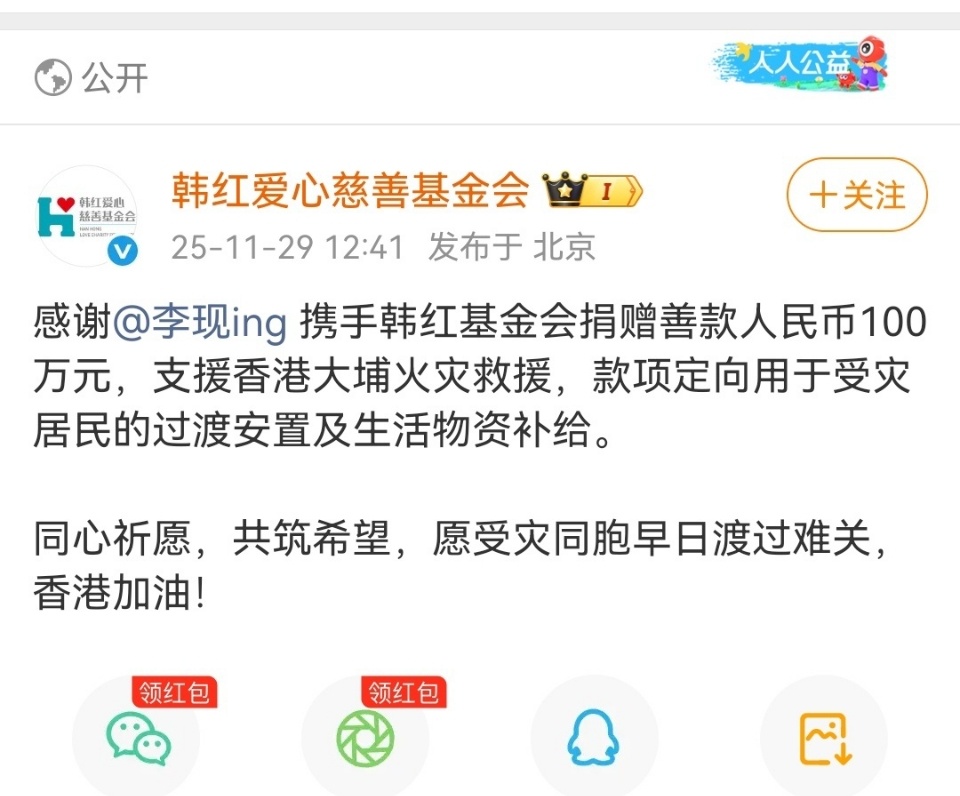 李现向香港捐赠100万元李现捐赠100万元 李现向香港捐赠了100万元!!!李现