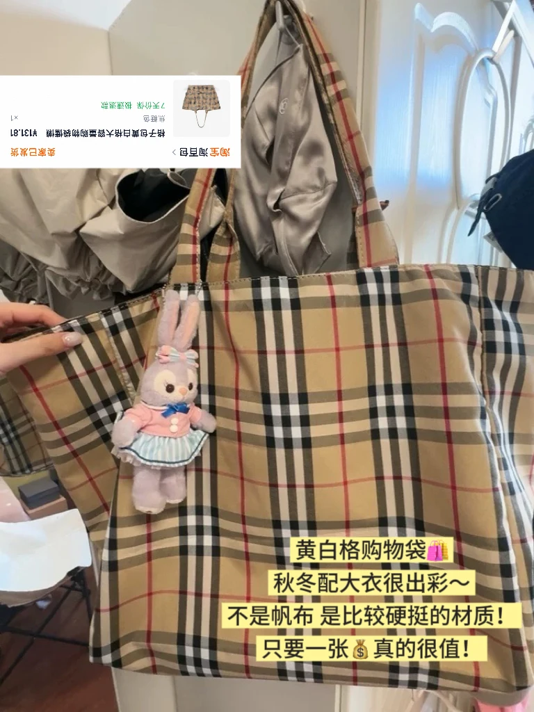 3️⃣黄白格纹托特包