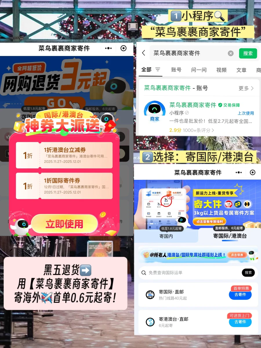 ➡️选择:寄国际/港澳台,黑五退货首单只要0.6💰起!