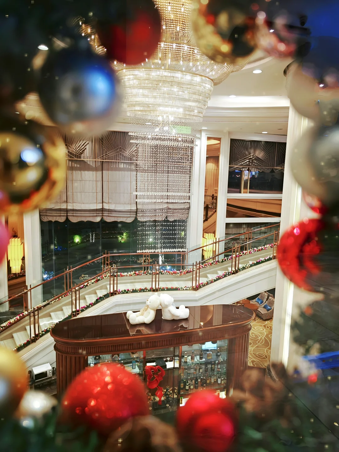 圣诞老人发礼物、员工表演节目,现场氛围超热闹!演出结束后就是点亮圣诞树和彩灯的环节,灯光亮起那刻真的好治愈~亮灯仪式结束,大家一起去吃自助餐,整个流程安排得明明白白,能感受到酒店对顾客的满满诚意!