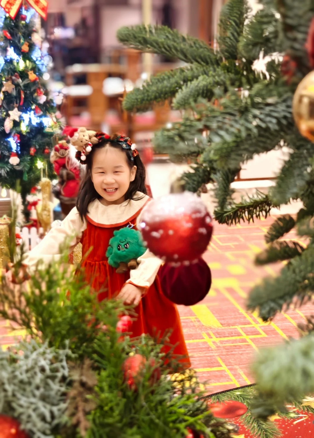 ▫️ 机位2-圣诞树前拍半身:蹲下!仰拍!和圣诞树顶端星星合影,显高又梦幻。