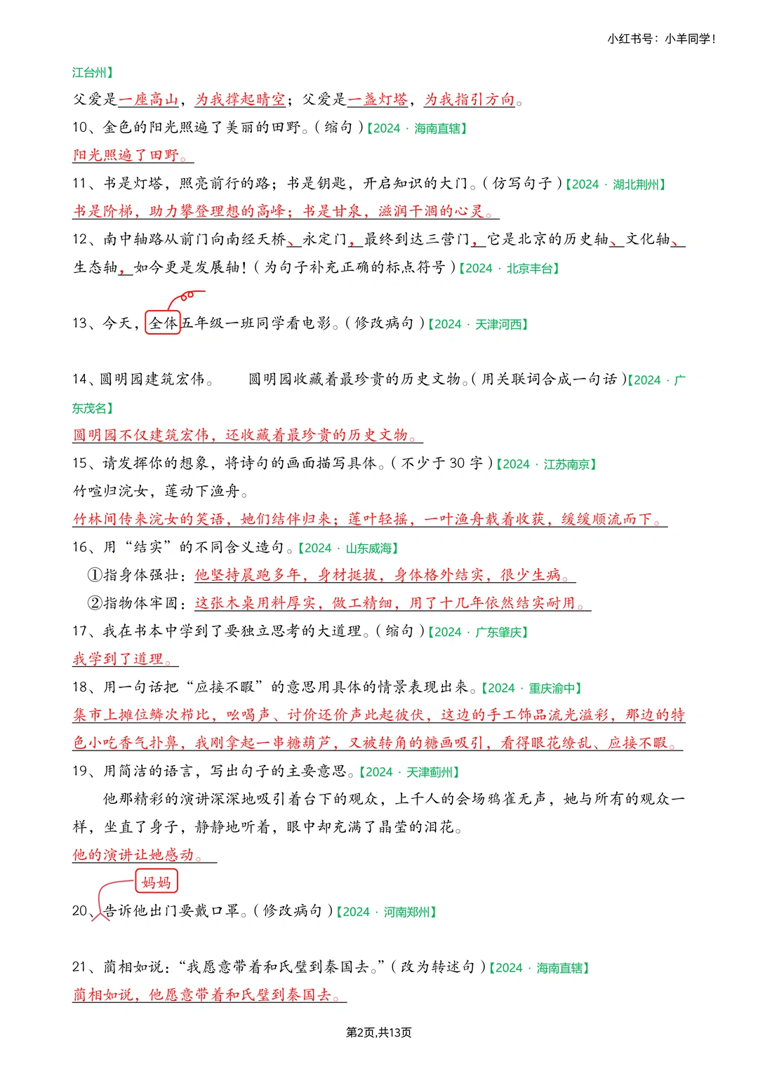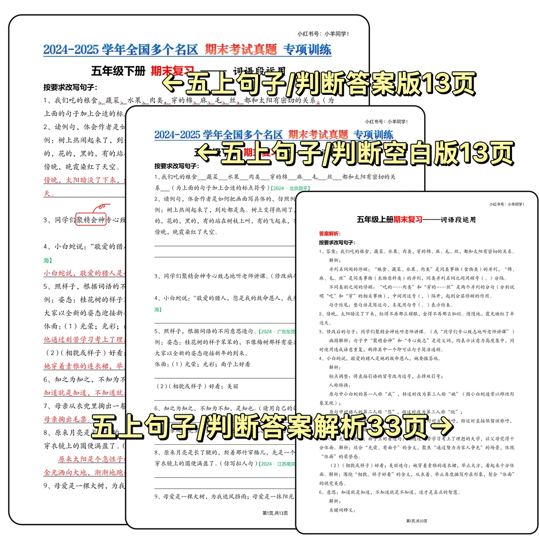🎈这套专项整理耗费大量时间和精力,助力五年级的同学更好的进行期末复习从容面对期末考!!!