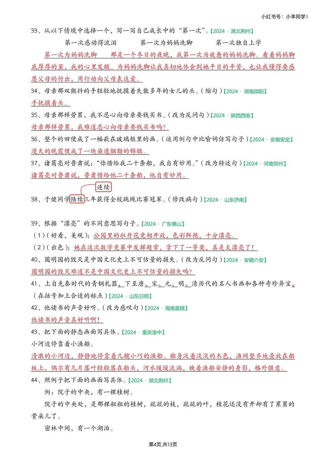 🗂词句段运用+判断题,空白版/答案版,各13页。