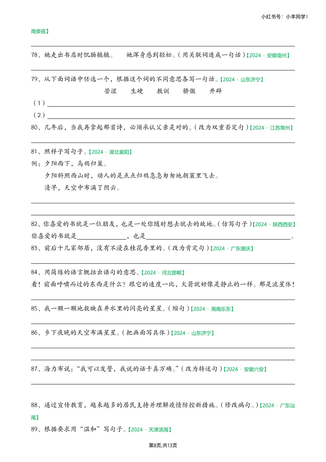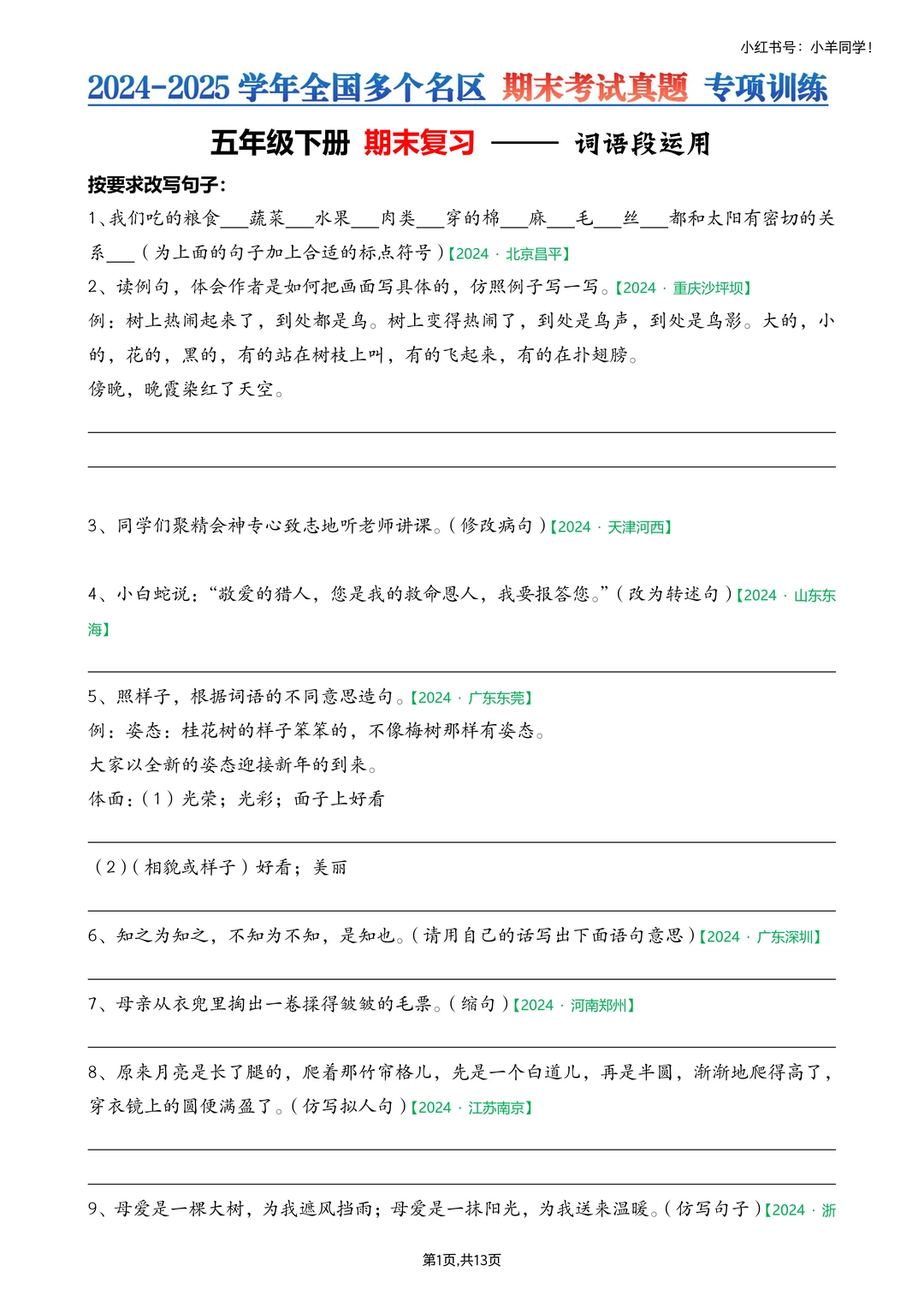 🎈这套习题参考了近百个地区的2024-2025学年的期末真题卷。很多地区都是相似题型,我选取了其中重中之重的,超高频考点的试题进行的总结。