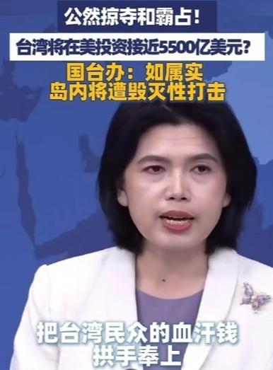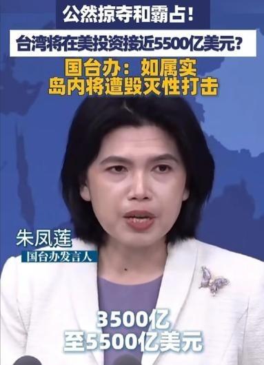 国台办:如属实岛内遭到毁灭性的打击!朱凤莲称:台湾将在美投资接近3500亿至55
