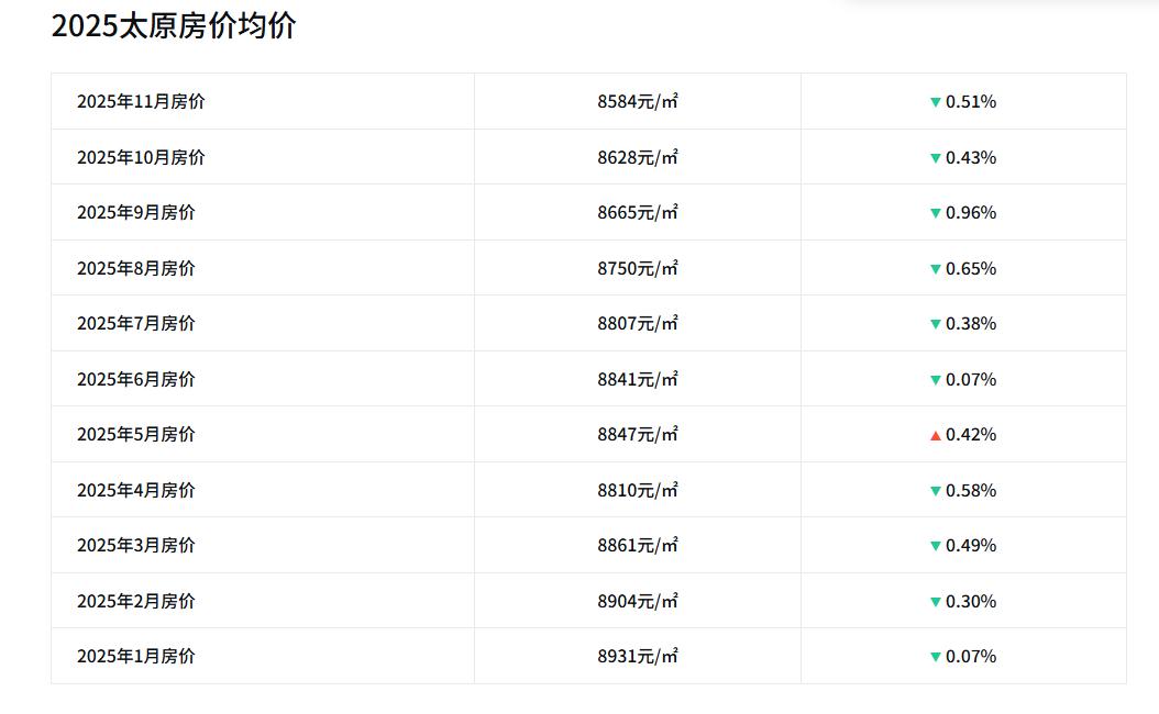 2025年11月,太原杏花岭区二手房均价7594元; 2024年11月,太原杏花