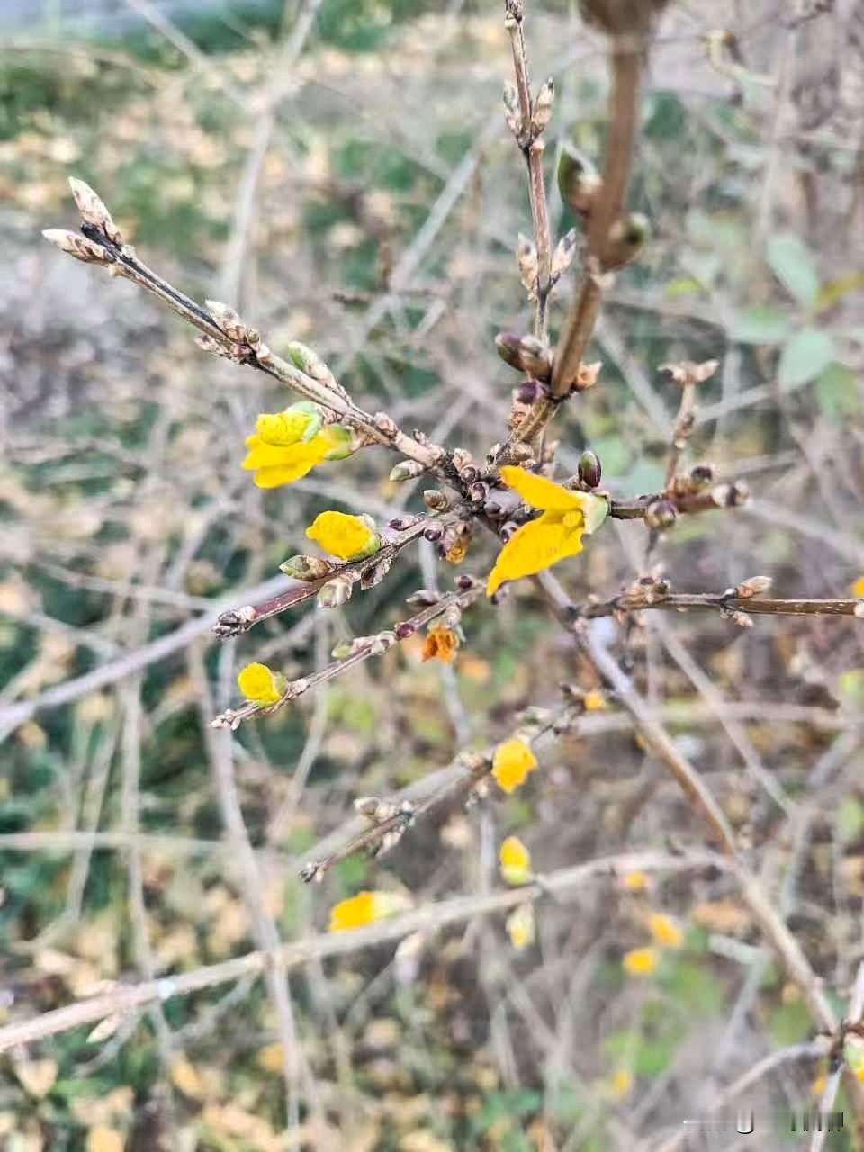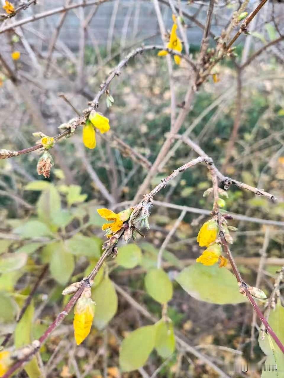 美丽的错 连翘感知气温暖, 错把仲冬当春天, 剩叶数片未落尽, 黄花迎风已绽满。
