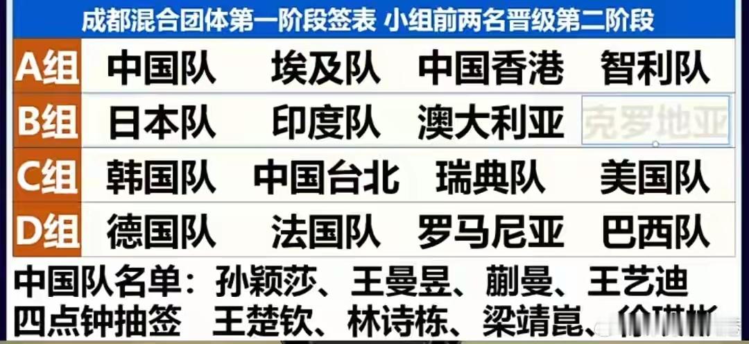 王楚钦孙颖莎揭晓1号签位莎头 成都混团世界杯下午四点开始抽签,王楚钦,孙颖莎,张