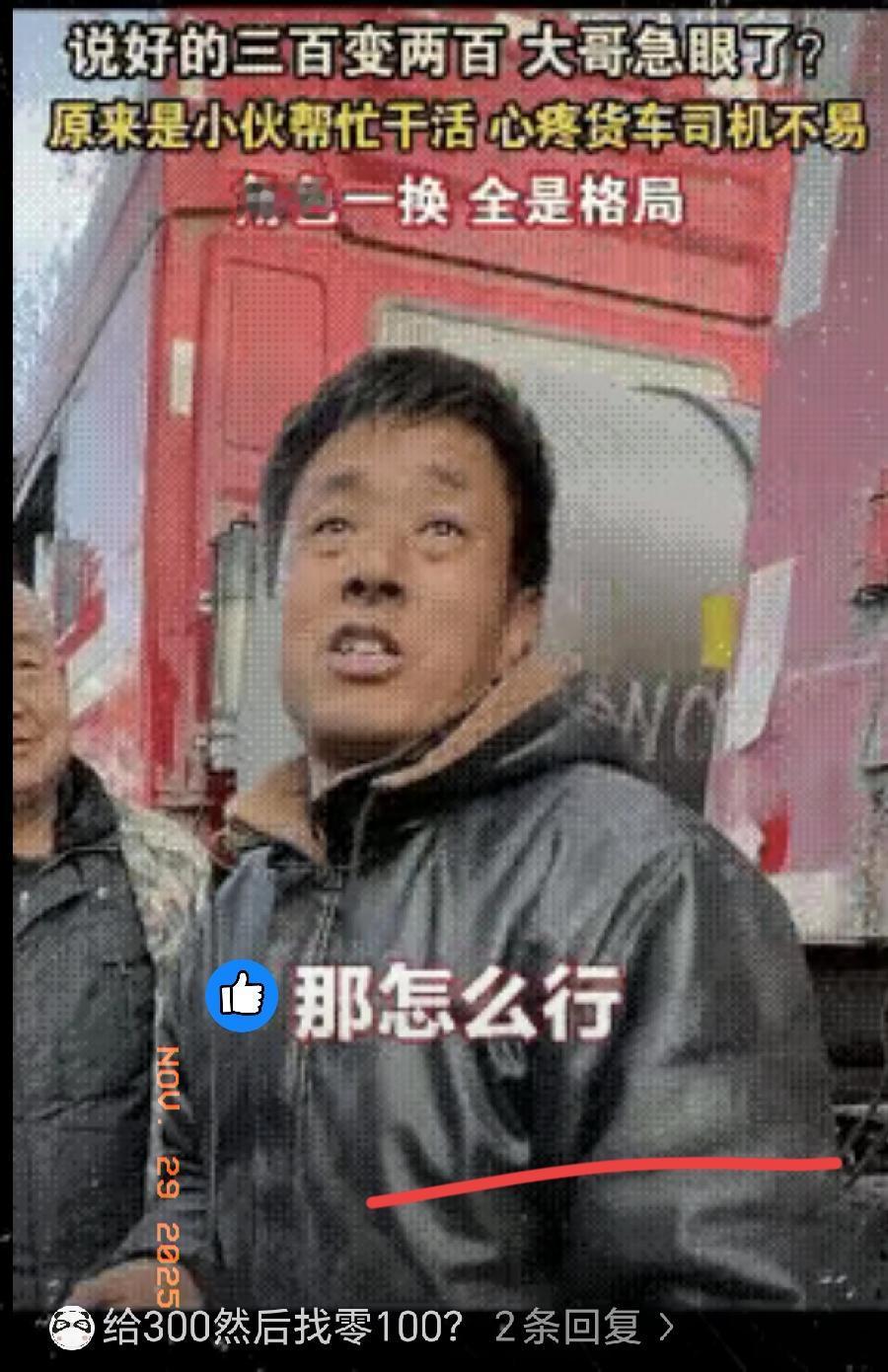格局打开了!陕西一货车司机发现爆胎,联系修车师傅,说好300元,结果,师傅把轮胎修好之后,竟然不按套路出牌,只收200元!从来都只听过“坐地起价”的,可这降价的还是头一遭。 这哪是简单的买卖,分明是成年人最动人的双向奔赴啊!师傅没盯着眼前的利益,懂货车司机风餐露宿的辛苦;司机也没想着占便宜,知道修车师傅流汗干活的不易,半箱水果递的是感恩,更是做人的分寸。 现在太多人把“精明”当本事,遇事就想着多捞一点,却忘了最珍贵的从来都是这份互相体谅的真诚。师傅守的是“不赚昧心钱”的底线,司机护的是“不占他人便宜”的体面,这份双向的实在,比任何算计都让人踏实。 原来格局大从不是什么惊天动地的大事,而是你懂我的难处,我念你的好。生活里的温暖,不就是这样你退一步、我敬一尺攒出来的吗?你遇到过这种双向真诚的暖心事吗?