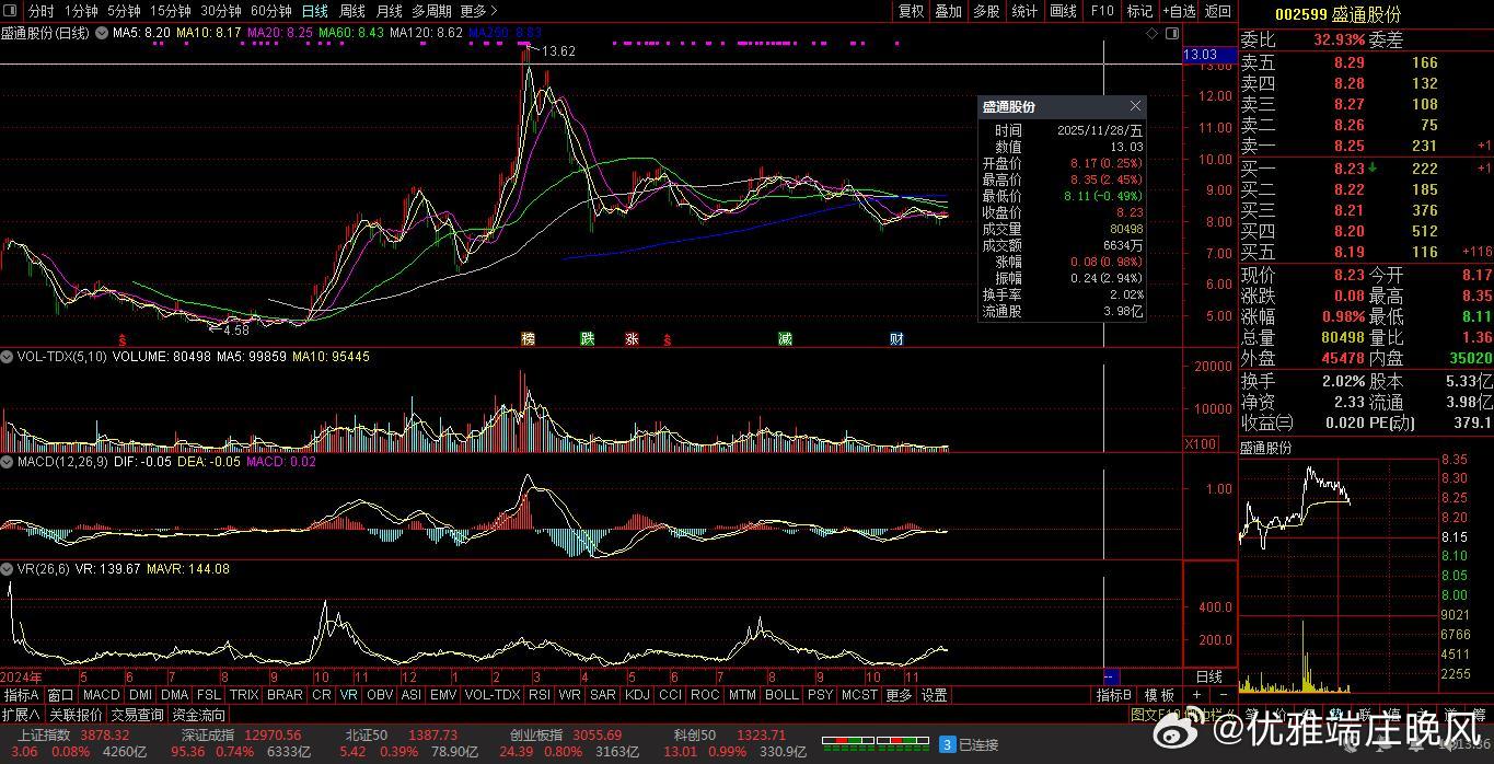 【财富晚茶-午间投资】早盘尾盘:永和巨量买单封涨;盛通股份:前期双顶高位震荡;沪深北证:林业反弹中药回调一、午盘尾盘:突发利空,永和涨停1、突发利空,杀跌涨停主旋律:减持发布巨量涨停。第一、早盘低开瞬间涨停利空爆发:11月28日早间,002795 永和智控,减持计划发布后。利空杀跌:9:31分钟:以6.11元(-3.17%)开盘。片刻瞬间:9:58分钟巨量买单封涨停。2、事件核心:减持反常第一、股东夏祖望及高管利空公告:2025年11月28日,永和智控(002795)在股东夏祖望及高管计划减持3.29%股份。利空之后:股价低开:3%却迅速涨停,封单资金达7428.42万元,成交额3.04亿元36。第二、市场反常“利空出尽”视野盘面:投资者说:减持计划明朗化后。资金认为:不确定性消除。叠加公司:基本面改善预期。推动股价:逆势上涨。3、资金抢筹:三大驱动第一、资产剥离主业聚焦公司正以3592.77万元转让亏损的昆明医科肿瘤医院,并下调普乐新能源股权转让底价20%,旨在回笼资金、优化业务结构。第二、现金回流改善强烈2025年三季:经营活动现金流净额同比大增162.56%,显示营运能力提升。第三、概念炒作潮涌澎湃公司涉及:TOPCON电池、民营医院等热点题材,外销占比近九成,受益人民币贬值。4、市场分歧:风险提示第一、看多说道主力资金减持利空已消化,且公司治理改善(修订13项制度)和现金流好转构成支撑。第二、看空说道公司历史存在“讲故事”嫌疑(如2016年高送转炒作、跨界并购失败),且前三季度仍亏损6046万元。5、后市透视:模棱两可第一、资产剥离减持实际需要关注:资产剥离进度、阀门管件主业盈利能力、股东减持实际执行等情况。第二、改善强势溃败回调假如亦或:基本面持续改善,股价或延续强势。反之溃败:概念退潮后可能面临回调压力。6、资产剥离:最新进展第一、医疗资产挂牌转让昆明医科肿瘤医院100%股权于2025年11月24日挂牌转让,底价3592.77万元,交易完成后将不再并表。第二、此前已经剥离资产剥离之一:达州医科(95%股权)、凉山高新(70%股权)及西安医科(73%股权),挂牌价均较收购价折价约70%。剥离之一:光伏资产:泰兴普乐51%股权及债权首次挂牌价3049万元(较前次交易价降50%),因无受让方,二次挂牌价下调20%至2439.2万元。7、追寻市场:反应涨停连续涨停:11月24日、28日股价连续涨停。主因资产:剥离优化业务结构、现金流改善(三季度净额同比增162.56%)。8、实控承诺:后续计划实控人承诺:2025年12月20日前完成资产剥离,否则将按程序收购。二、透析市场:风口公司,上下起伏002599 盛通股份 盘中01涨1、突破七年箱底视野盘面:前期双顶,高位震荡:2025-11-28 截至11:30:股价报收:8.24元。股指上涨:1.10%。成交总量:80506手,成交金额:6635万元。总换手率2.02%,观总市值:43.89亿元。流通市值:32.80亿元。2、印刷科教翘楚主营业务:印刷-科技教育的研产和销售。公司品牌:中国印刷百强企业。3、营收净利优秀经营剪影:2025-09-30 三季度报:公司营收:15.3696亿 同比增2.17%。公司净利:867.4029万 同比增1818.07%。三、创作不易:优质网易,财经作者投资投机迷茫之中:给予尽可能有帮助:资本市场风险自负。(优雅端庄晚风《网易号》财经领域创作者和原创作者 违者必究)