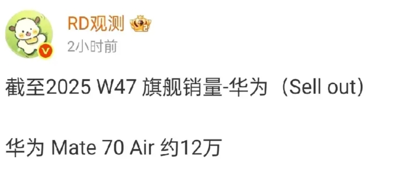 iPhone Air跟华为Mate70 Air是一对难兄难弟,前者12天10.7万台、后者12天12万台,两个“御三家”品牌都带不动Air这种怪胎机型的销量,轻薄路线是错的?