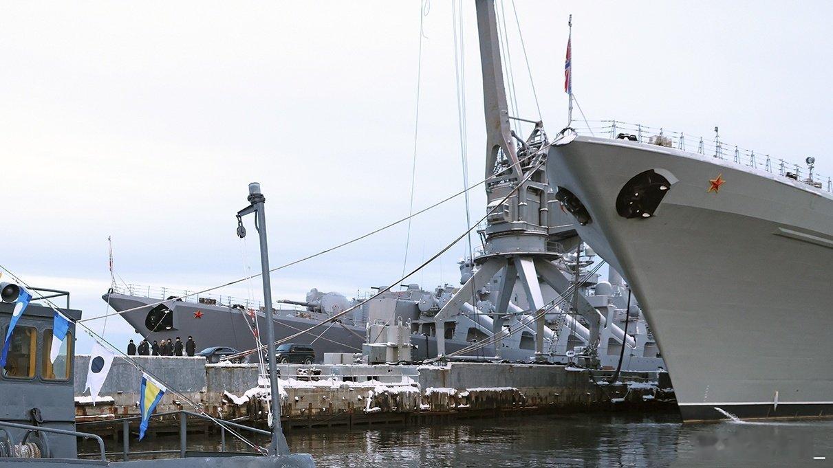 “彼得大帝”号核动力重型巡洋舰(北约称战列巡洋舰)近日在一个仪式中露面。图左是“