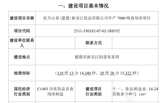 据杭州市生态环境局公示,农夫山泉拟投资2842万元,扩建杭州建德新安江年产7000吨食用冰的项目基地,主要从事冷冻饮品及食用冰制造,其中160g规格冰杯产品占比将达八成,施工工期为6个月。