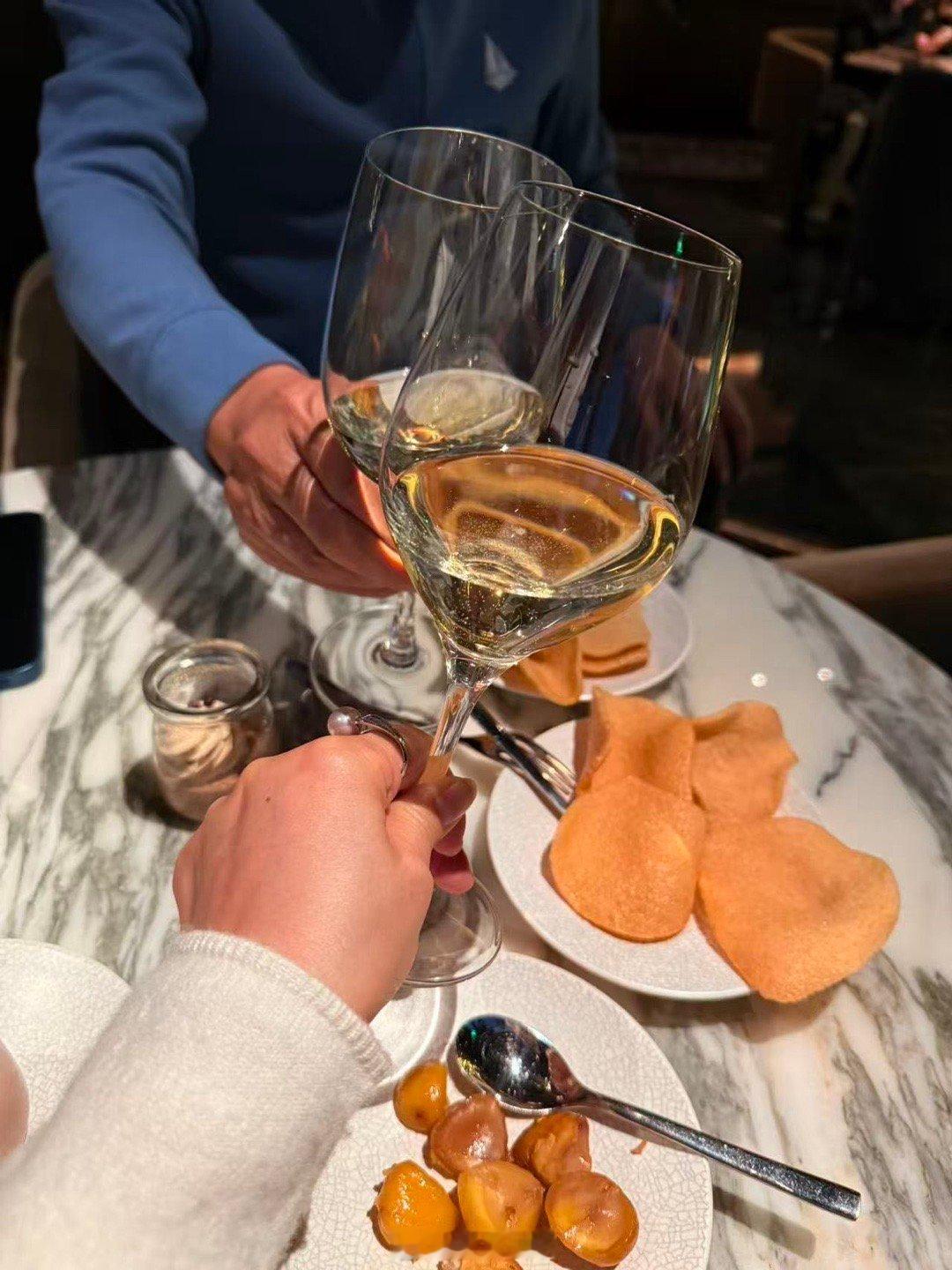 在酒店今晚的Happy Hour喝了香槟酒。小食有湖北藕盒、板栗、萝卜丝饼和虾片等。本博的这张照片像谁呢?