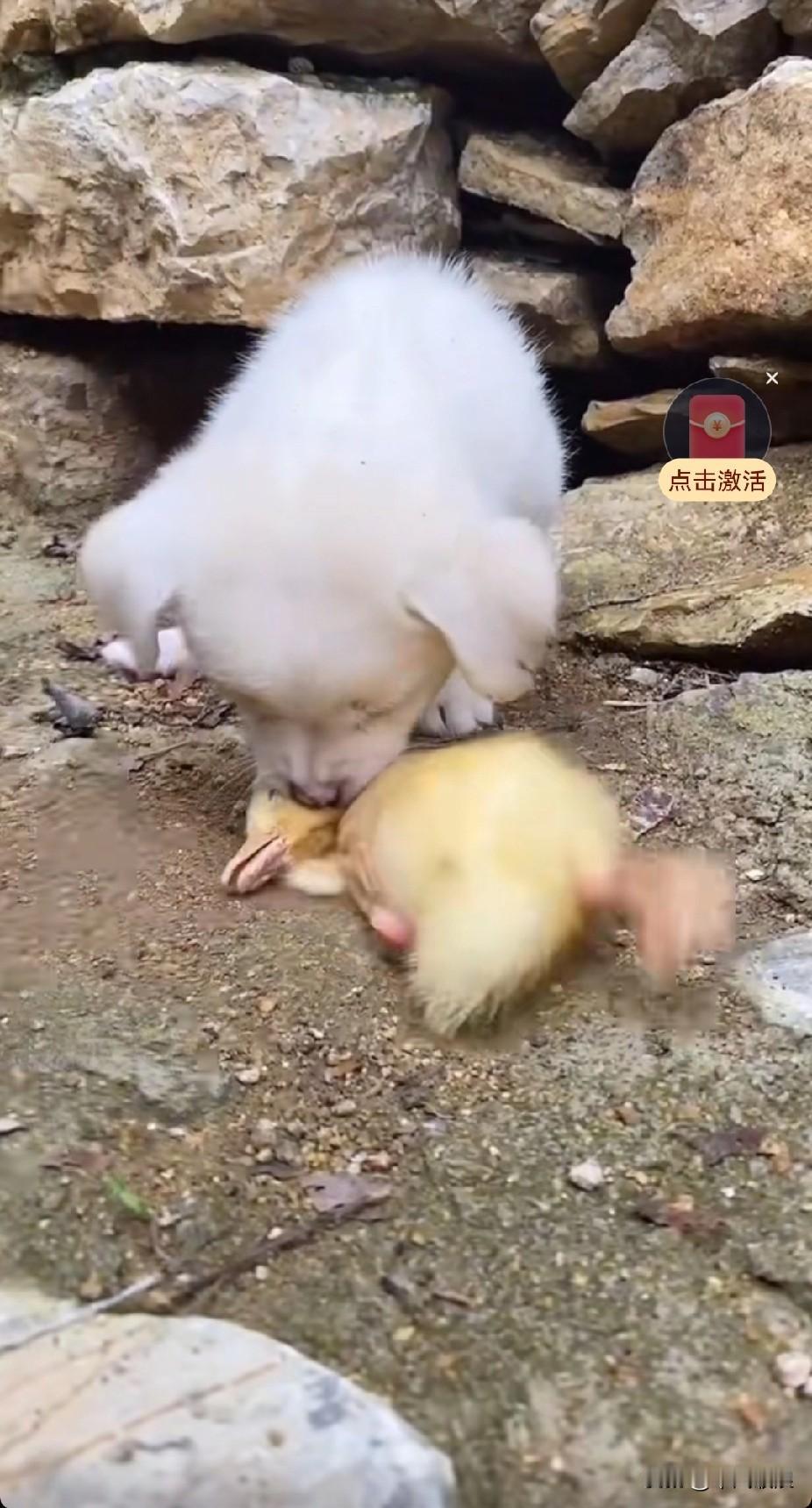 万物皆有灵。一只刚出生不久的小鸭子,在小狗面前摇摇晃晃,怎么都站不起来。狗狗帮它