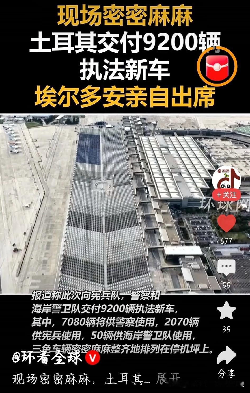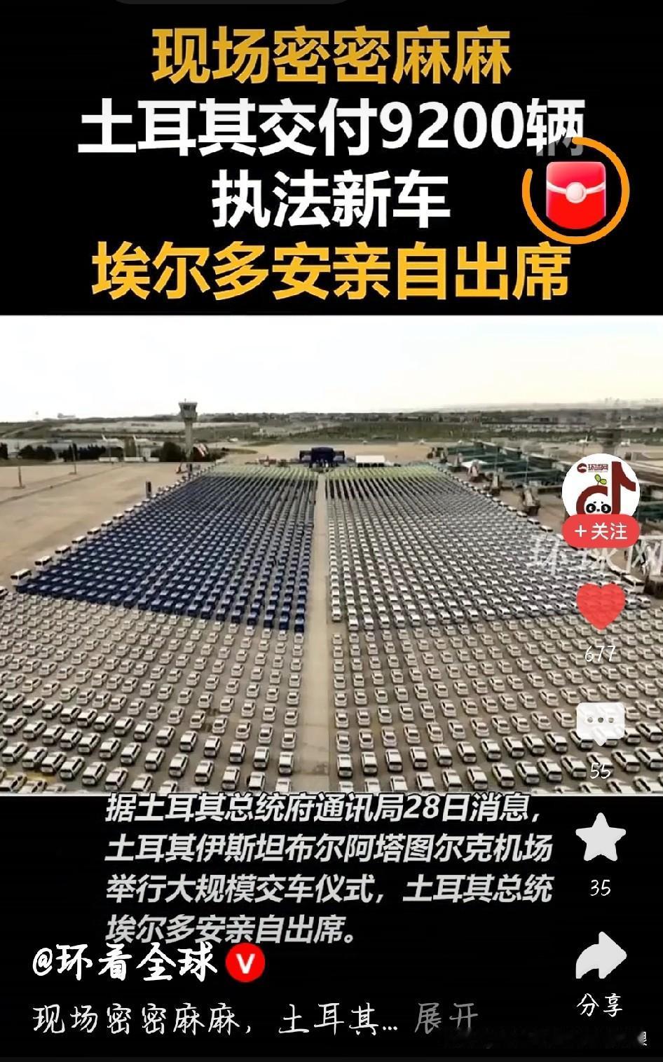 土耳其这波操作太硬核了!9200辆新执法车直接停满机场,密密麻麻望不到头,总统都亲自来站台,场面比大型车展还震撼! 别以为这是摆拍,这批车全是实用家伙事儿——本土造的,有巡逻车、反恐车,带防弹玻璃和高清摄像头,跑起来又快又安全,堪称执法人员的“移动堡垒”。 之前土耳其执法车又老又破,遇到紧急情况跑不快,还没防护。现在面临反恐、缉毒这些压力,正好需要新车撑场面、提实力。更厉害的是,车的核心部件都是自己产的,不依赖外国,还能带动自家产业。 这哪儿是买车,分明是给老百姓筑安全防线!有了这些硬核装备,犯罪分子肯定得犯怵。 你觉得这波操作够实在吗?评论区聊聊~土耳其交付9200辆新执法车停满机场 土耳其警车 土耳其出口车 土耳其大巴车 折叠执法车 土耳其突击队 土耳其急救车