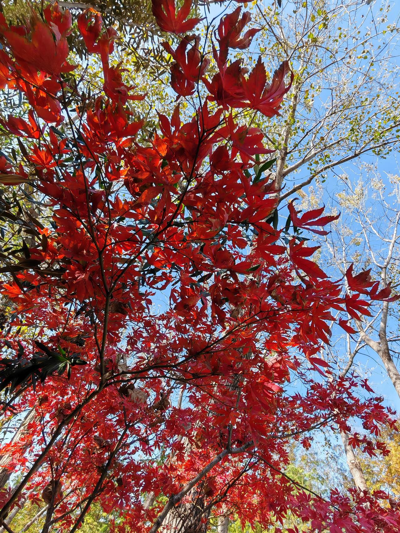 初冬,艳丽的红枫叶比春天的花朵还要美丽,让人沉醉。
