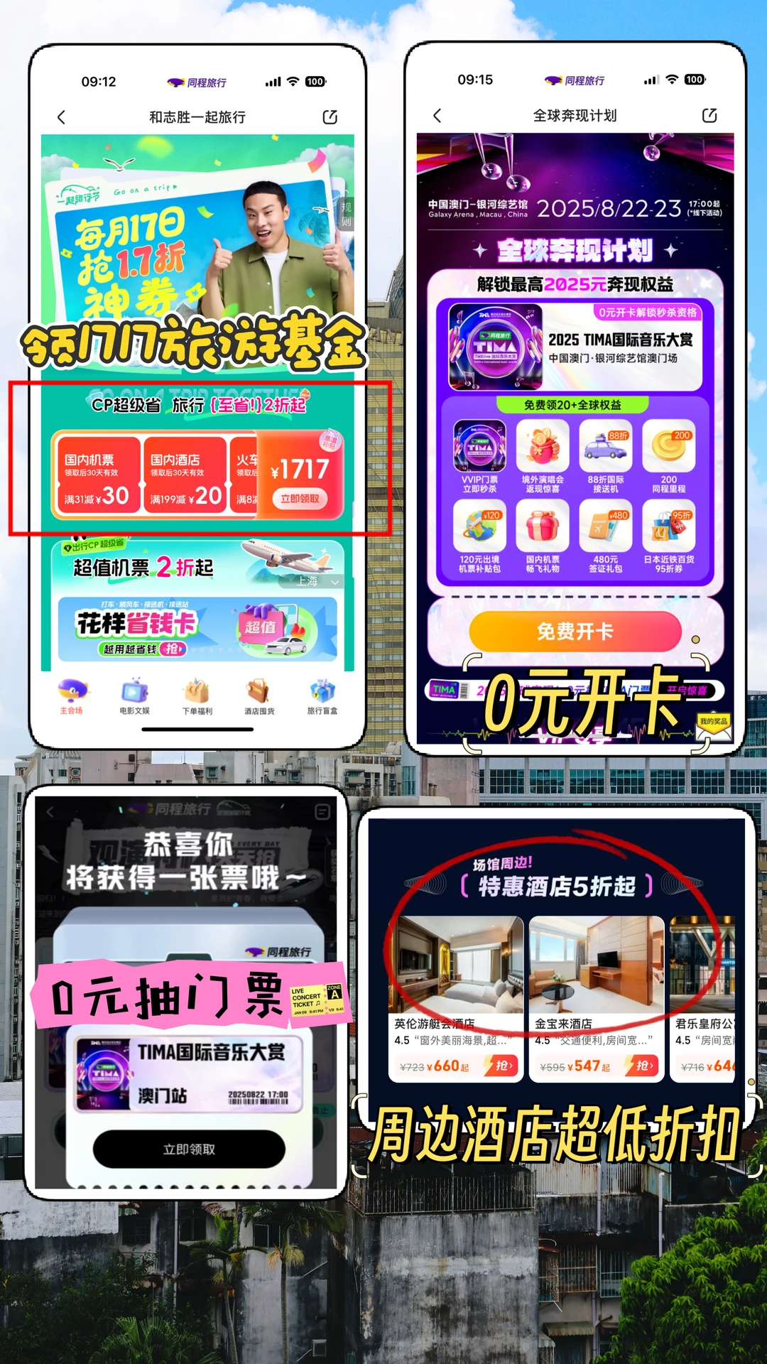 还有0元开“全球奔现卡”,领机票/接送机等超多追星权益,顺便能0元抽TIMA音乐大赏门票!冲就完事儿我这次全程都是在同程上预订的,真省事又省心🥳