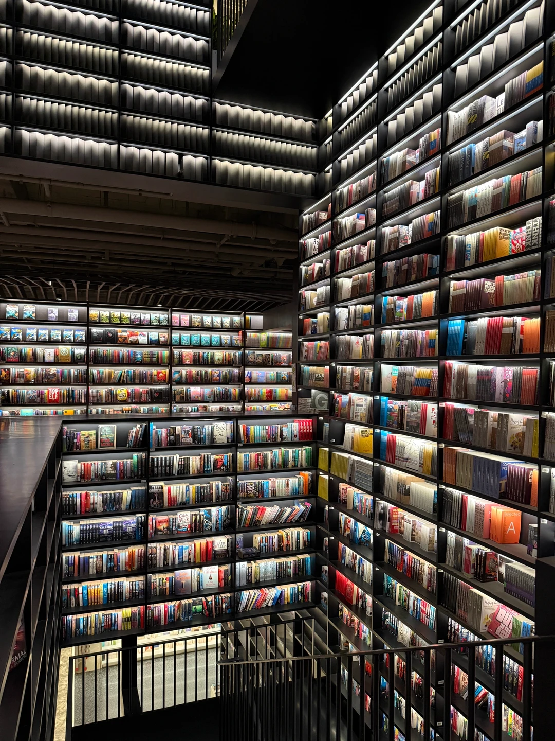👉2F黑色楼梯+书墙——经典机位,文艺感拉满