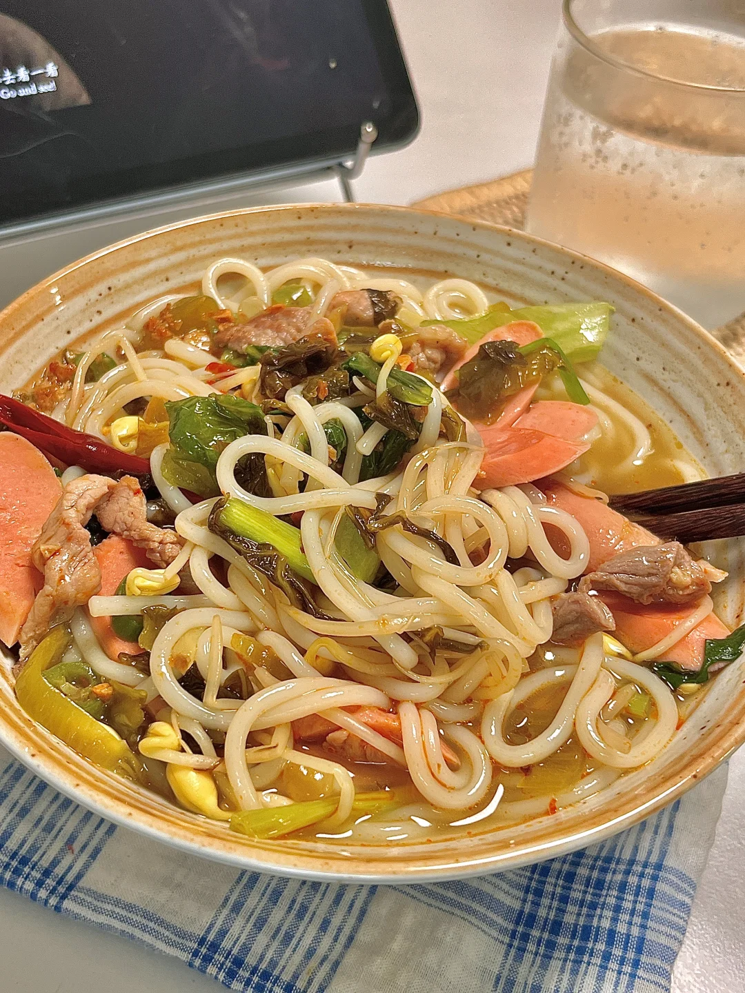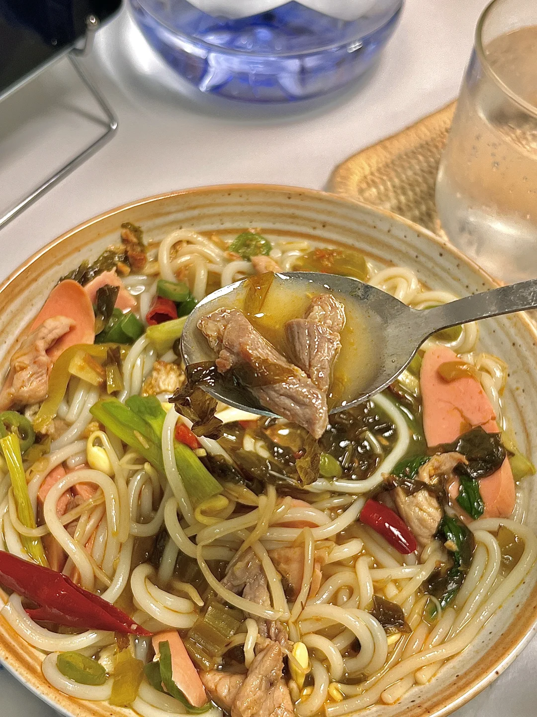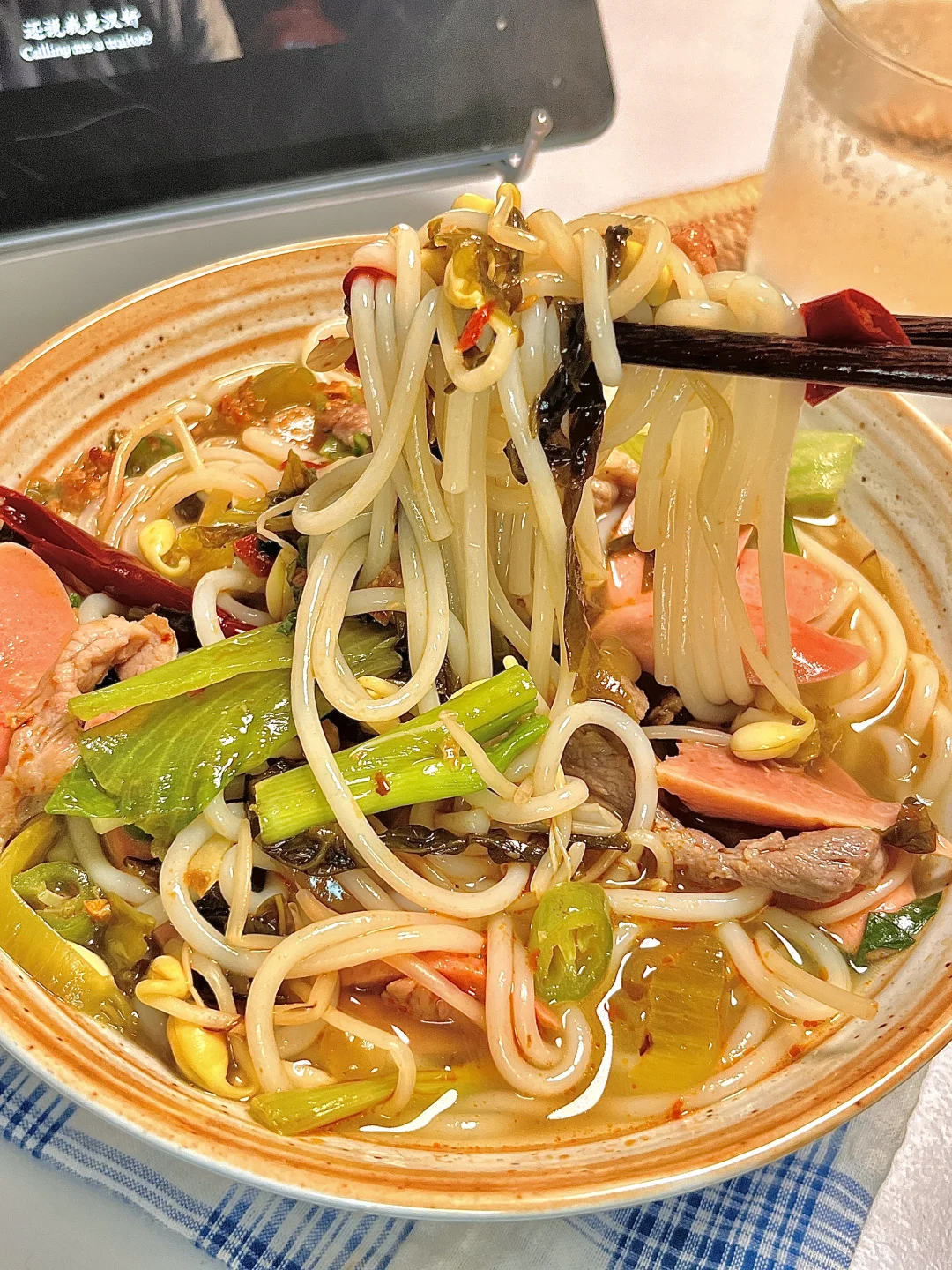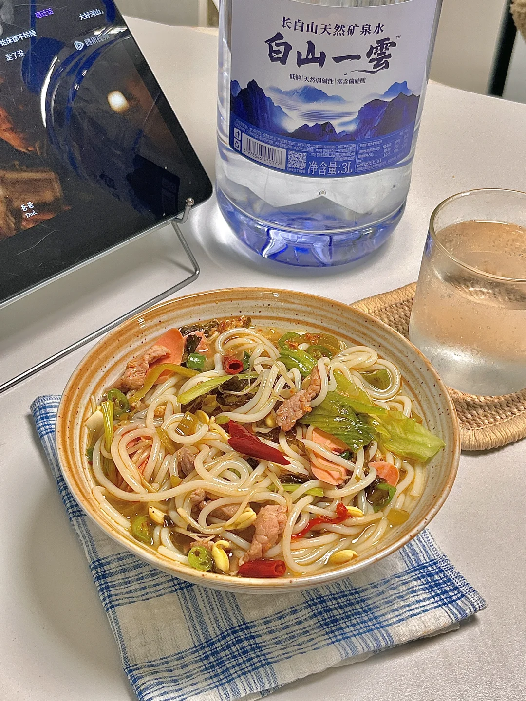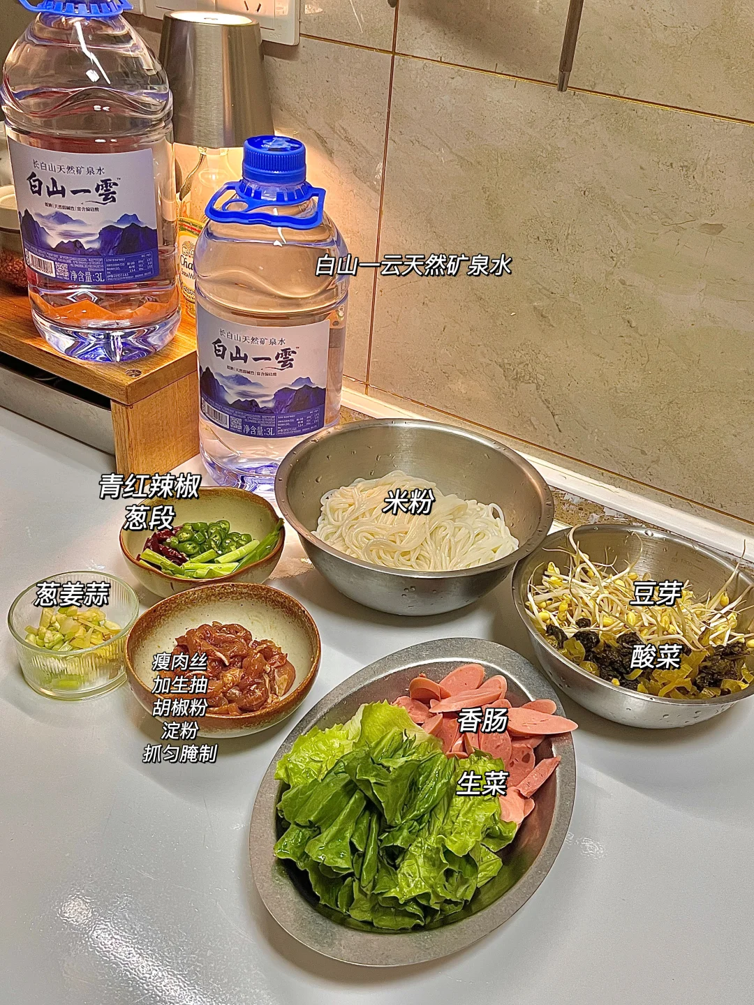 🍴今日份一人食: 酸菜瘦肉米粉 矿泉水 . 爱嗦粉的姐妹,一定要试试这个酸菜瘦肉米粉🍜 酸酸辣辣☺️非常开胃爽口~自己做就要料多多的,除了食材新鲜水也很重要! 今天用白山一雲长白山天然矿泉水煮的粉,果然这种低钠的水很适合,可以减少汤中钠的摄入量 喝起来不咸,好吃到一口汤汁都不剩🤤,矿泉水富含偏硅酸,天然的弱碱性 对人体健康非常的有益的~ 平时生活中饮用 煲汤 煮茶 做饭都是不错的选择。