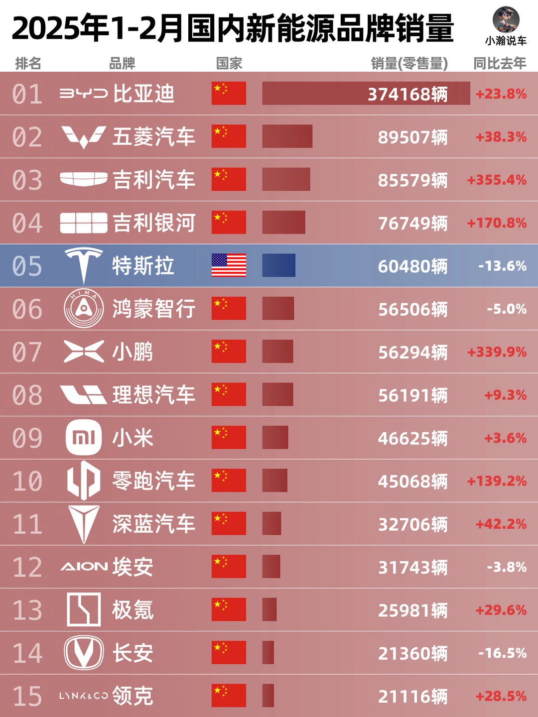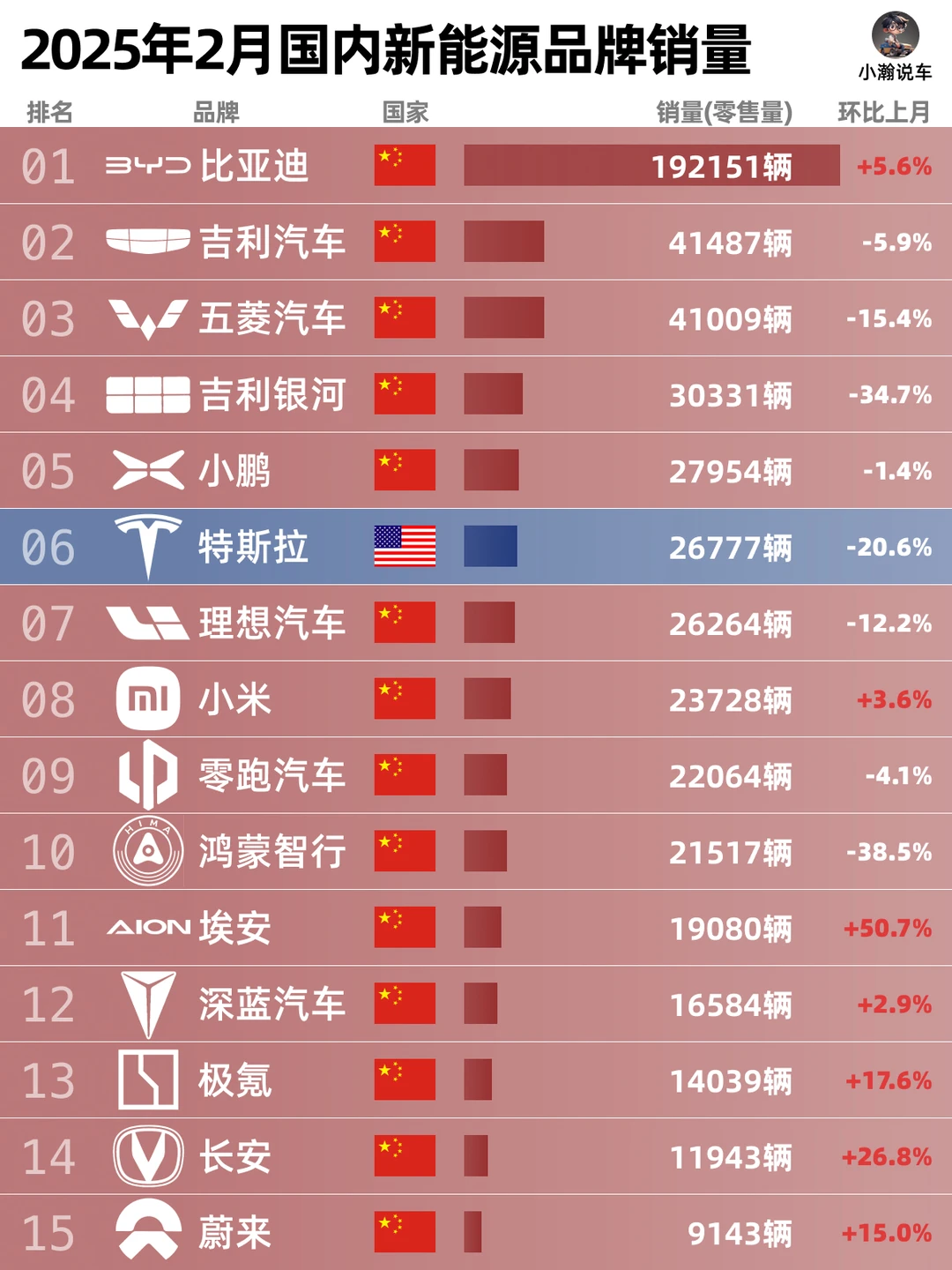 🌟至于新能源榜,现在的“泛红化”到什么程度宝子们自己看吧!随着特斯拉份额的下滑和中国市场新能源车渗透率的不断上涨,势必会有越来越过国产新能源品牌实现月销过万!