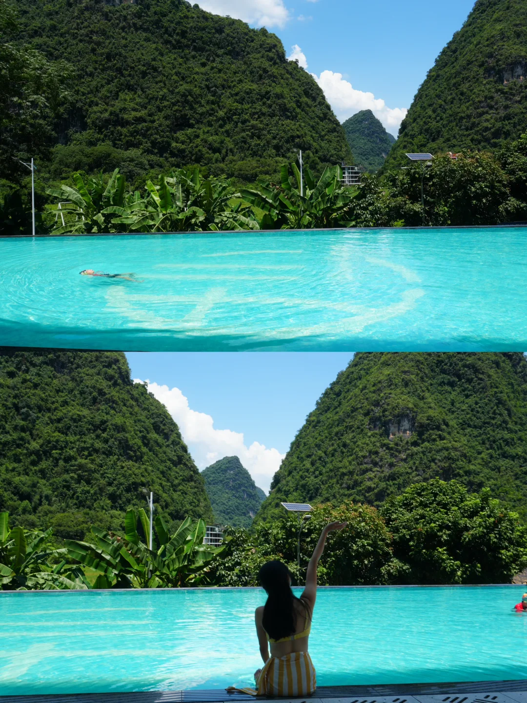 1. 🏊♀️ 山景无边泳池:超大泳池与喀斯特群山无缝连接,畅游其中或池边躺平,都是极致享受!