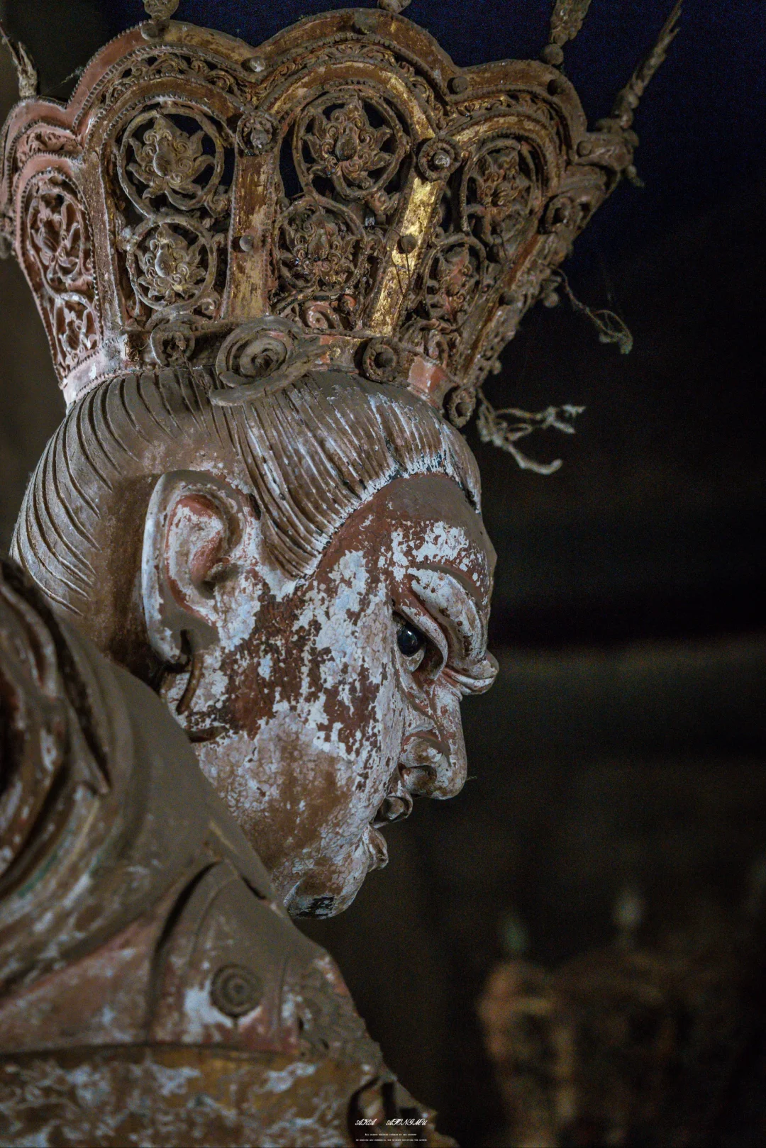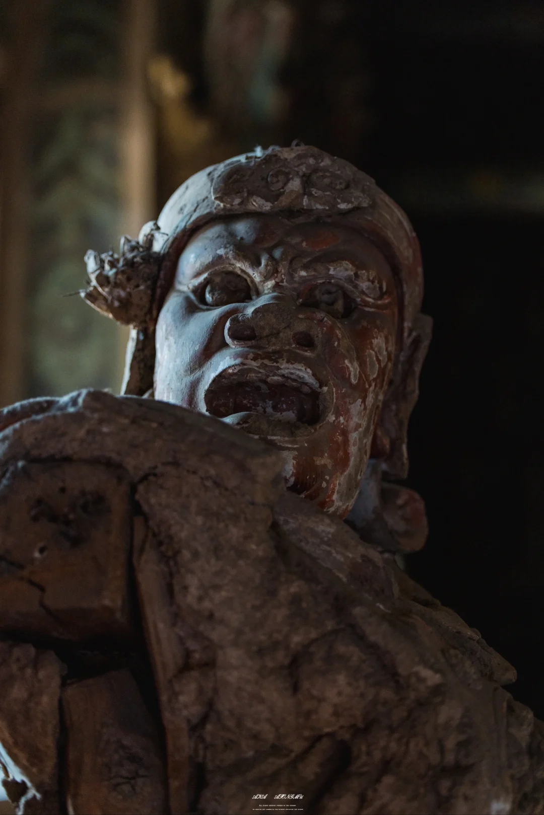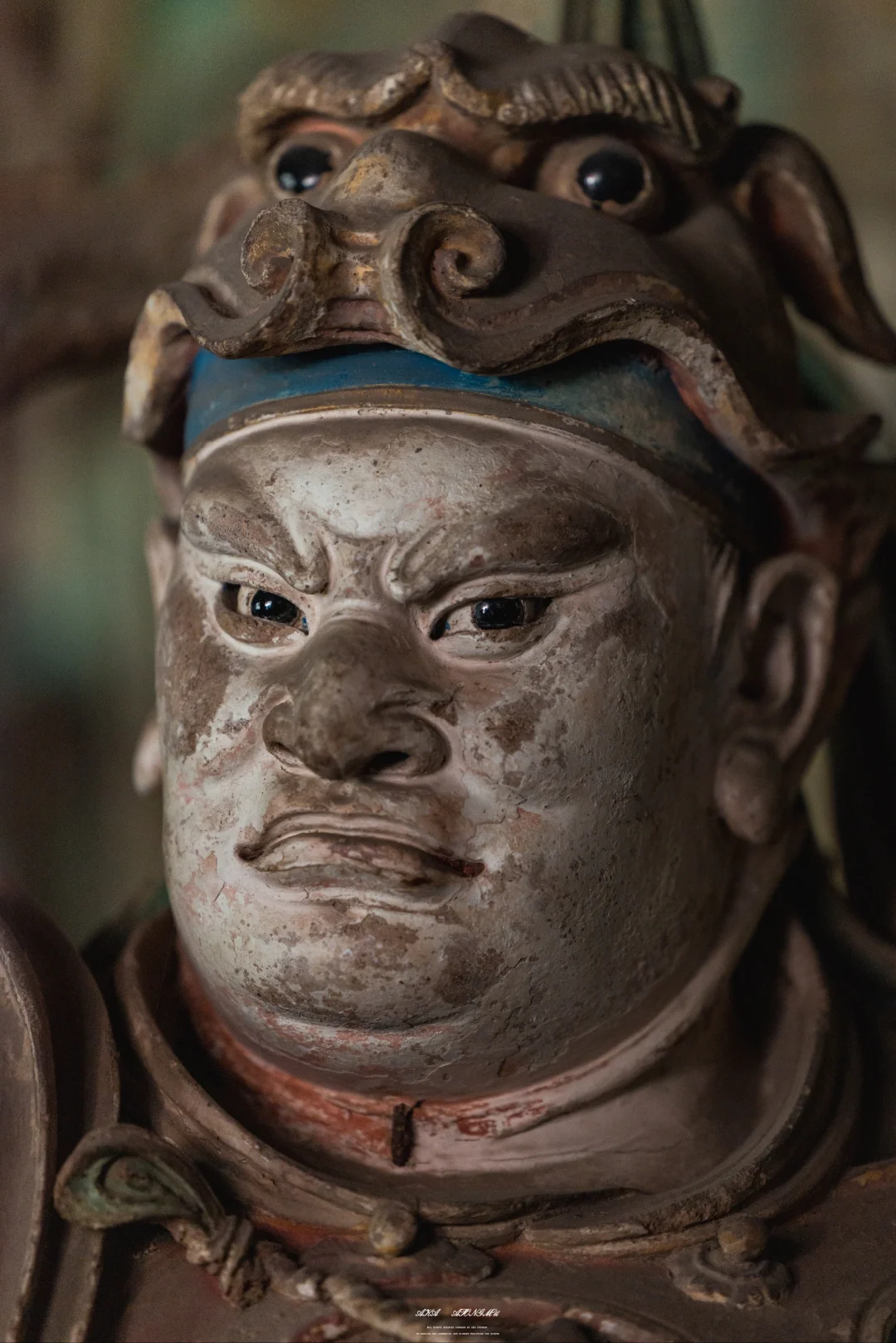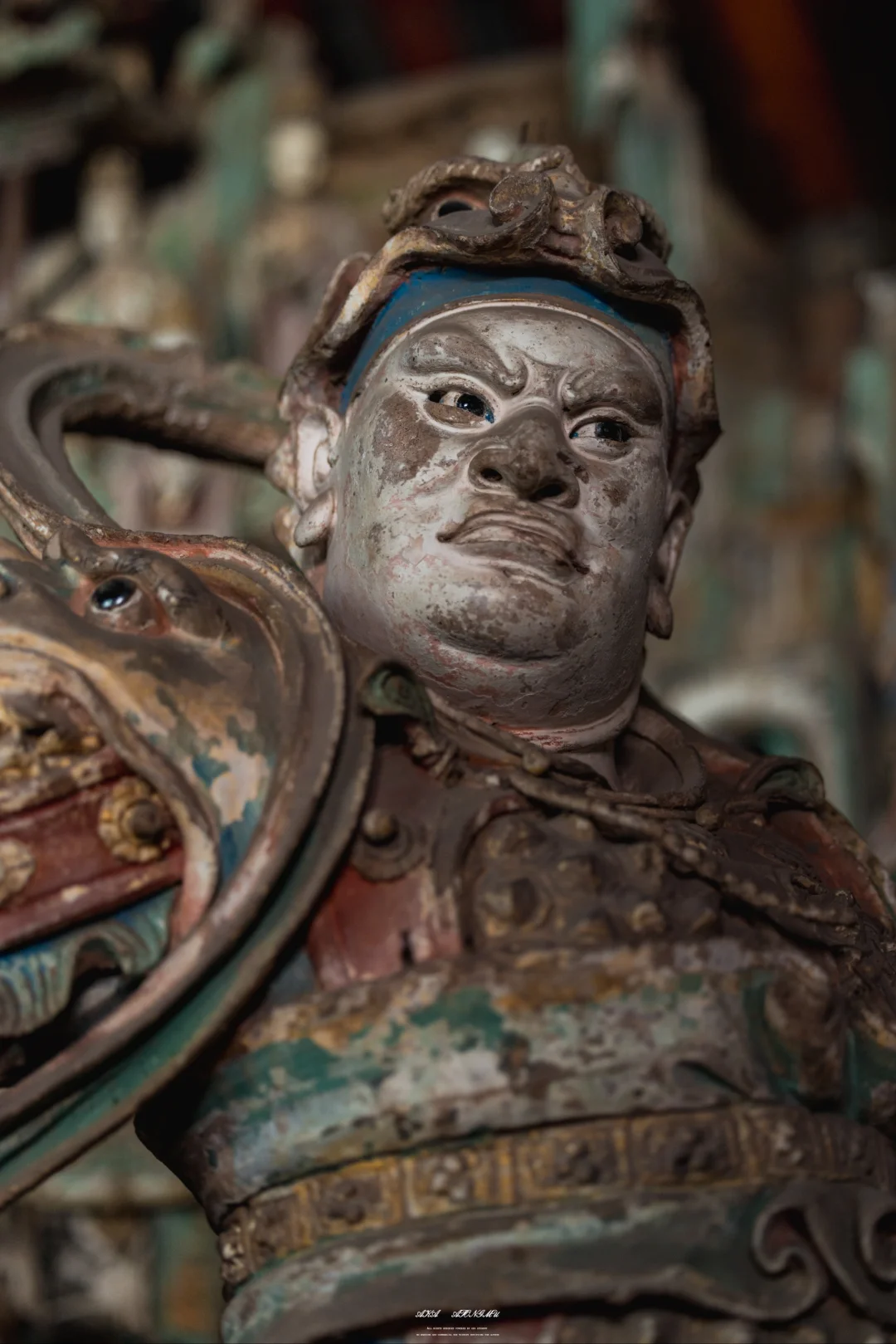 🗼最摄人心魄的当属千佛殿的韦陀像。这尊被誉为“全国韦陀之冠”的彩塑,身姿如蓄势待发的弓弦,腰部夸张的S形曲线与飞扬的飘带构成力学与美学的双重奇迹。匠人用红胶泥与黑琉璃镶嵌的眼眸,让神像的目光穿透六百年光阴,与每个驻足者完成一场无声对话。寺内2000余尊彩塑,从宋代的千手观音到明代的十八罗汉,每一道衣纹褶皱都是匠人指尖的温度