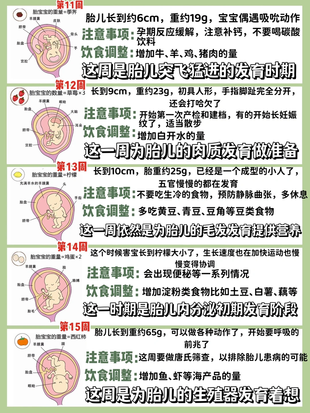 今天分享一下孕期1~40周宝宝的发育过程,看看怀孕时每个阶段胎儿的变化和发育,以及孕妈需要注意事项和每周需要补充的营养,希望能够帮到各位孕妈妈们~