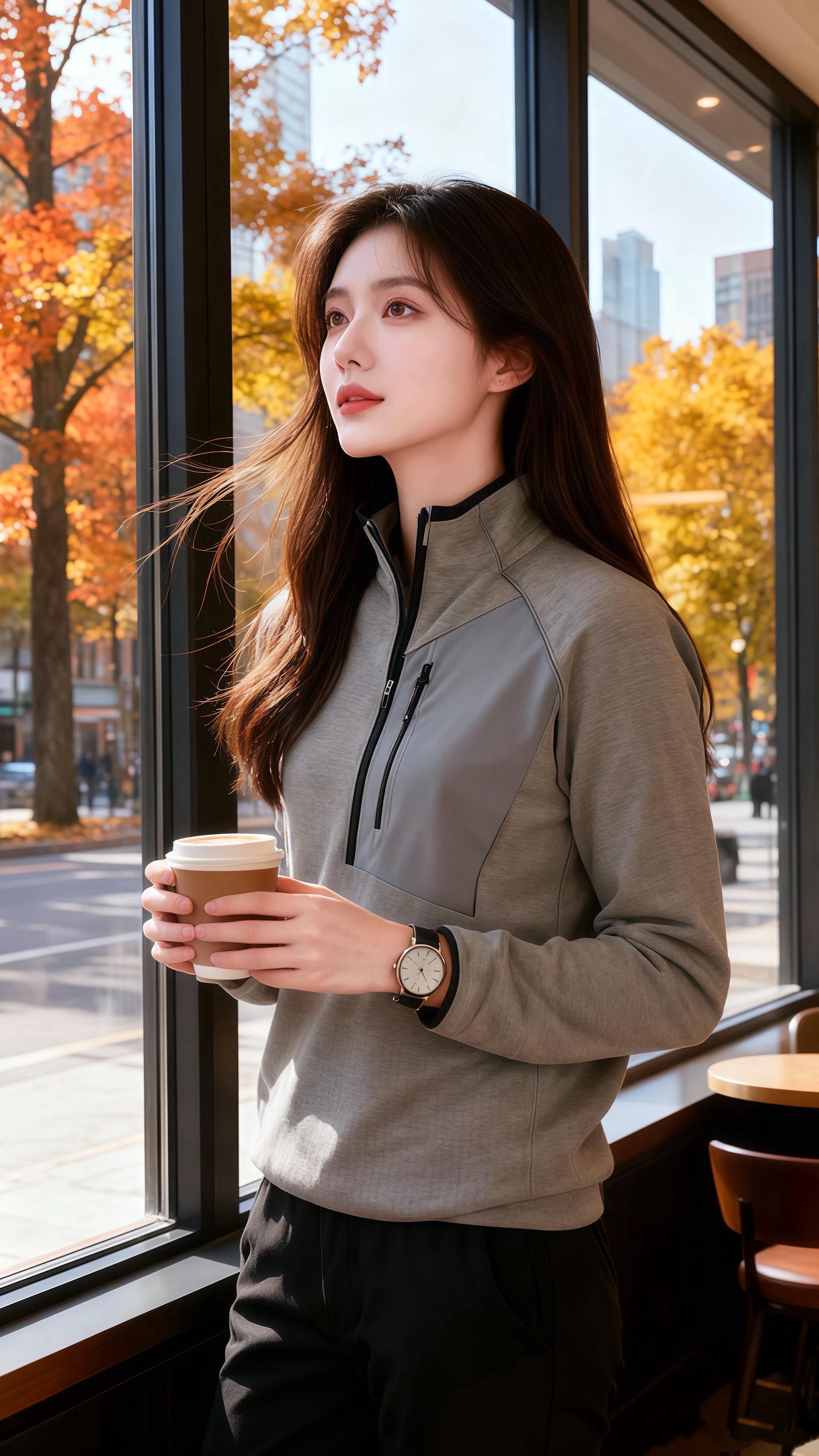 他把咖啡递过去,暖香裹着秋意漫开:“第一次见你穿这种款,就觉得你把‘舒服的好看’穿活了——不是刻意打