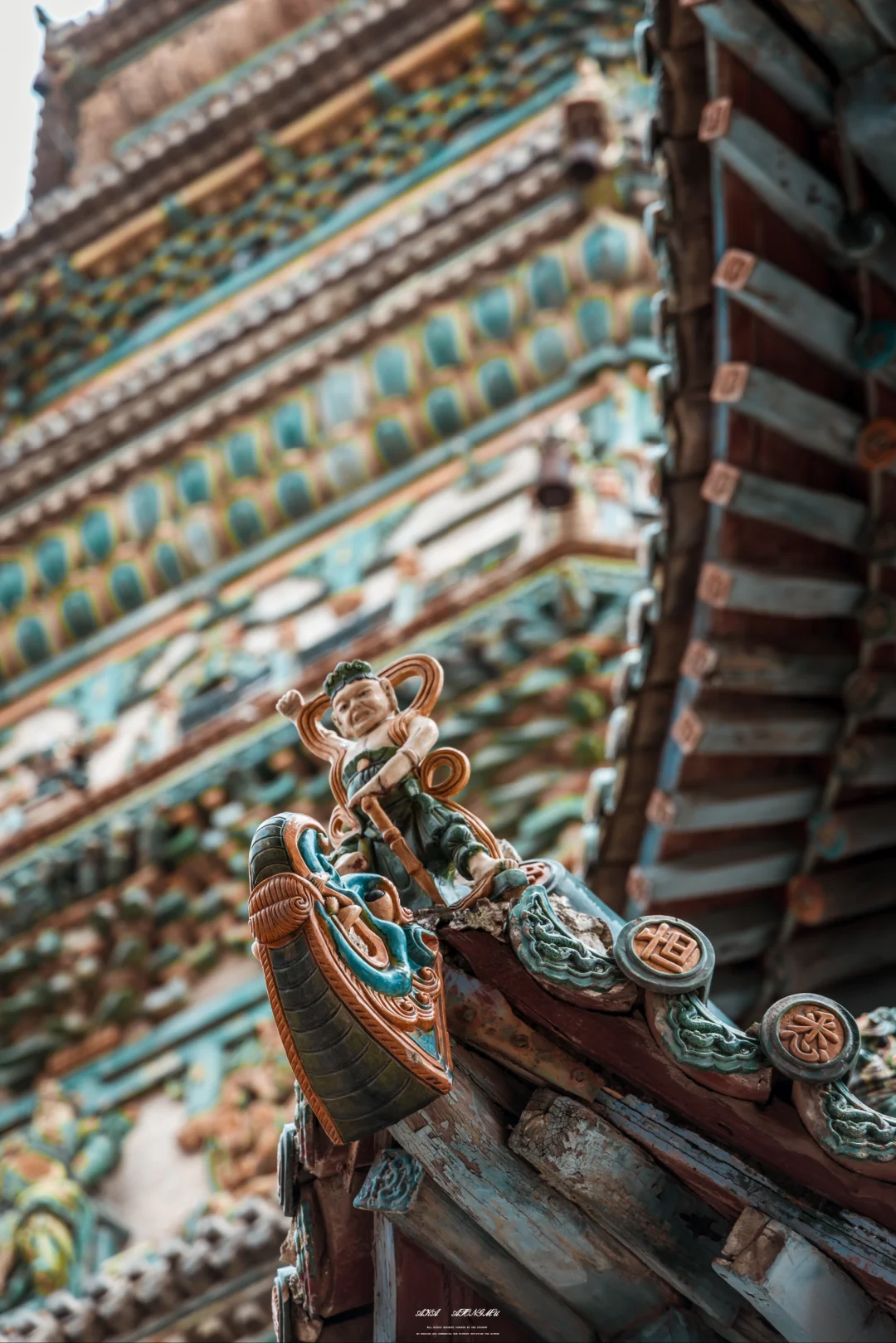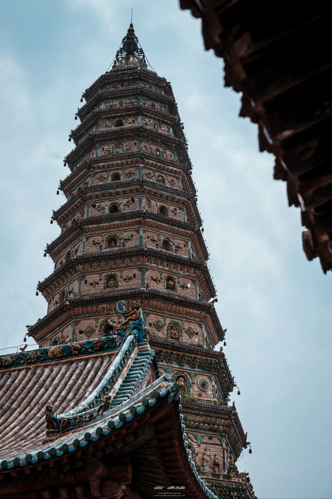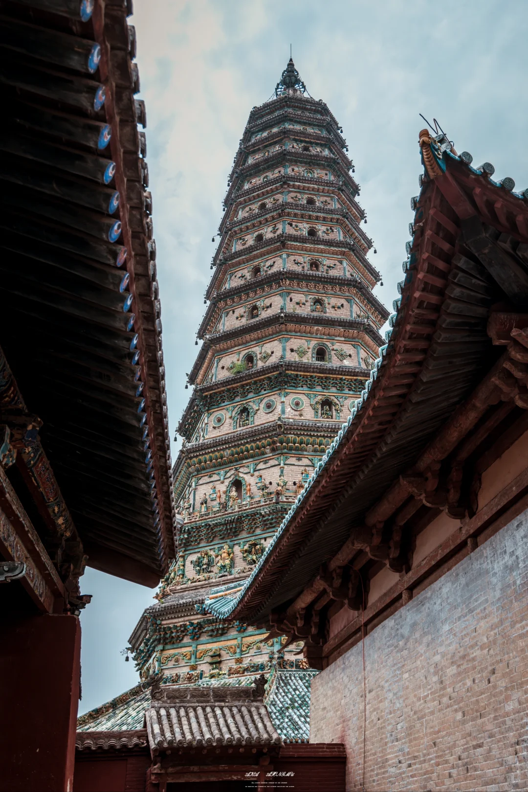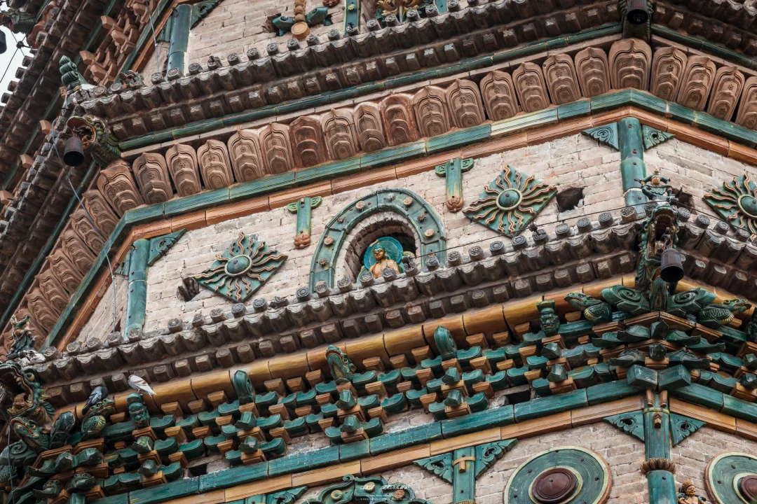 🌟塔身装饰着琉璃烧制的多种构件,在阳光的照耀下就像七色彩虹熠熠生辉,所以被称为飞虹塔