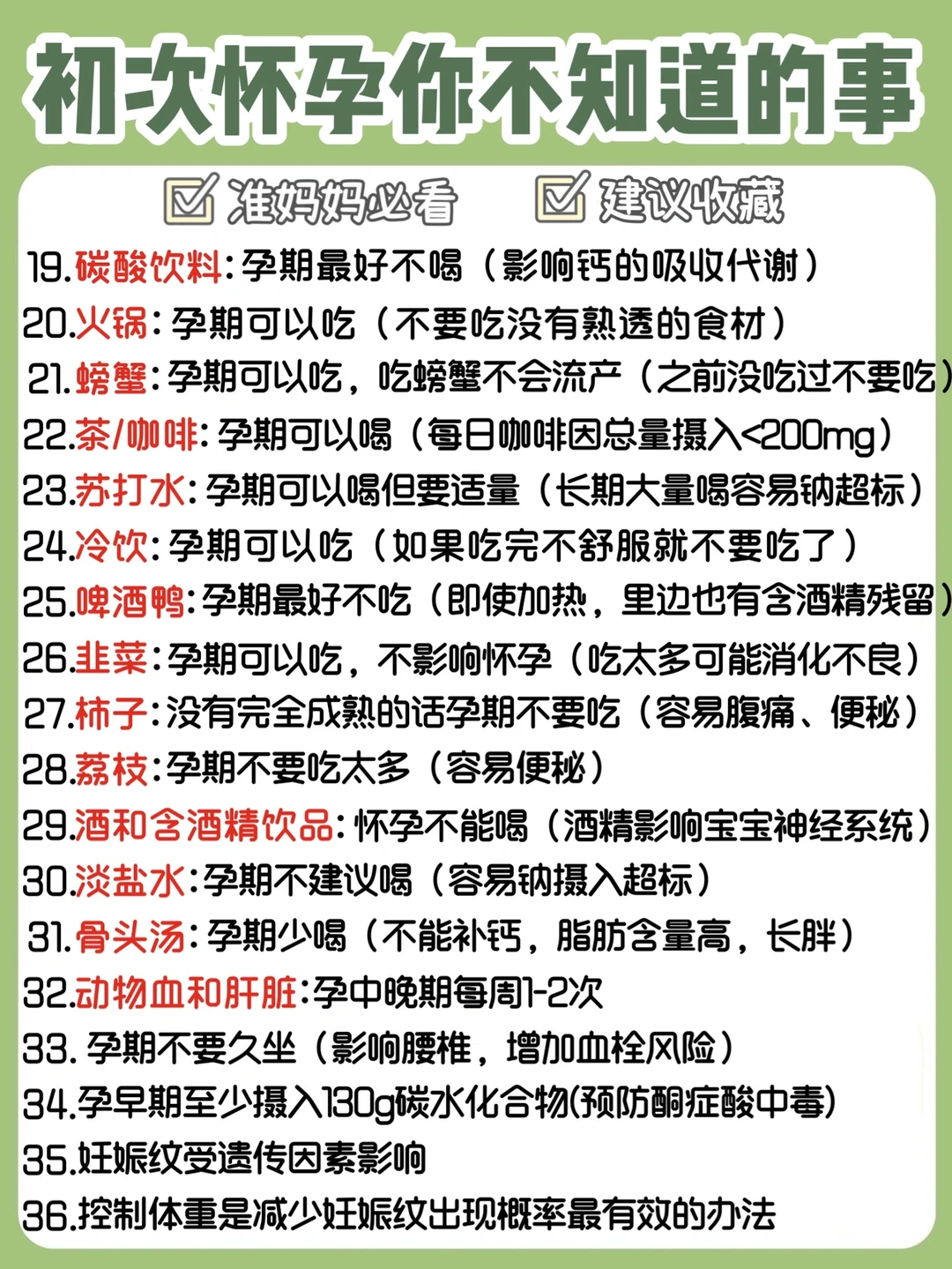 ❤️不要吃活血化淤或者易流产的食物(例如:薏米、螃蟹)
